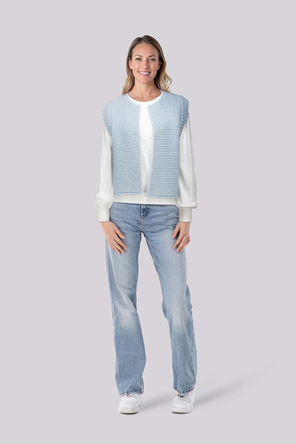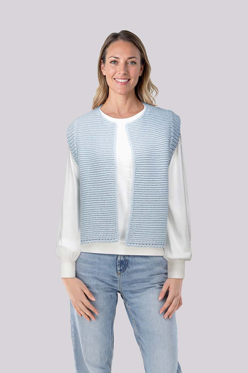 De Gilet Gringou van Bomont is een casual en stijlvol dames gilet met een ronde halslijn en capuchon. Het heeft een gebreide pasvorm zonder mouwen en een effen patroon, waardoor het veelzijdig en makkelijk te combineren is met verschillende outfits.