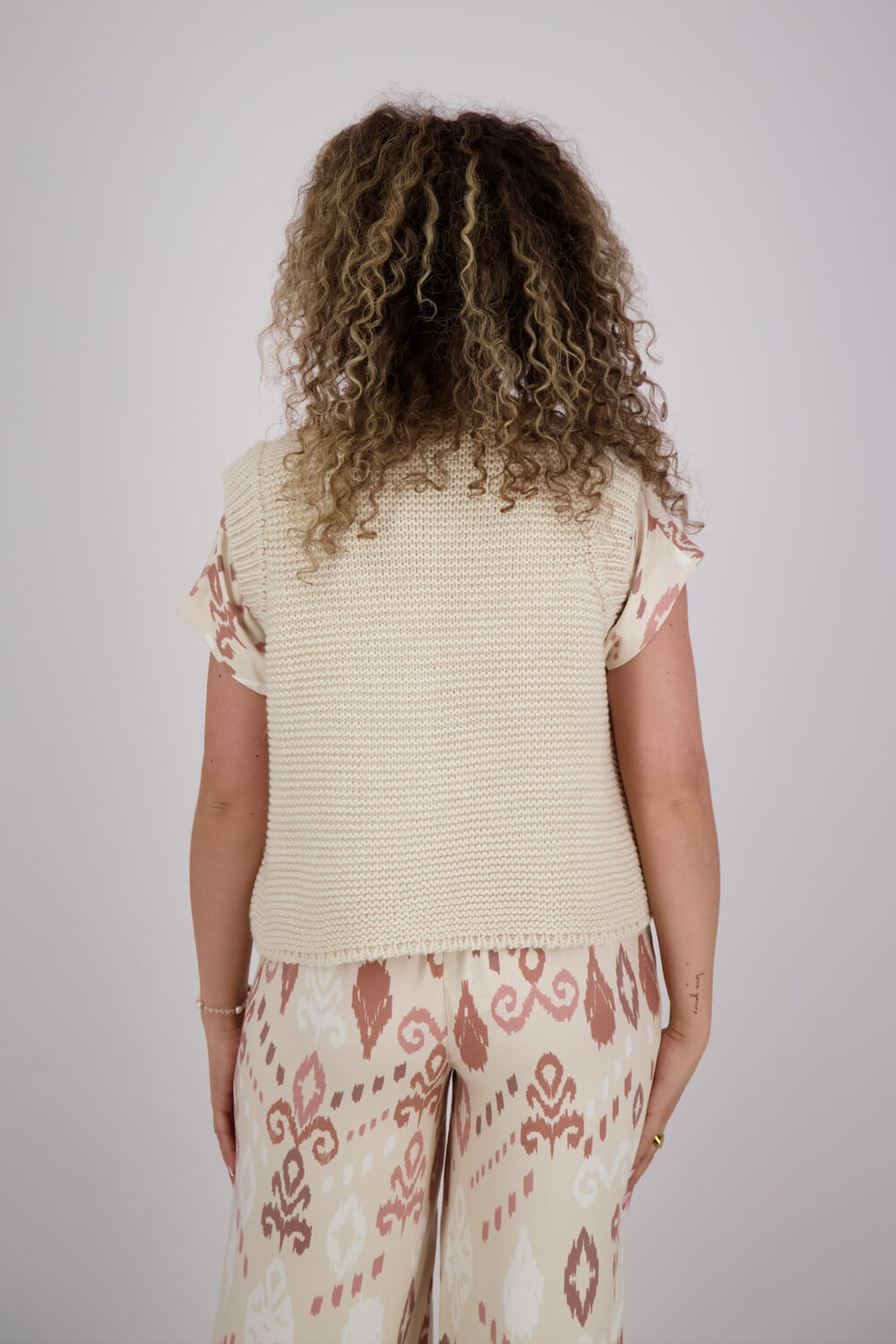 Gilet van Bomont, een veelzijdig en stijlvol dames gilet, is een must-have voor een minimalistische garderobe. Met een gebreide pasvorm en mouwloos ontwerp biedt dit effen vest comfort en elegantie. Ideaal voor elke gelegenheid, en eenvoudig te combineren met diverse outfits.