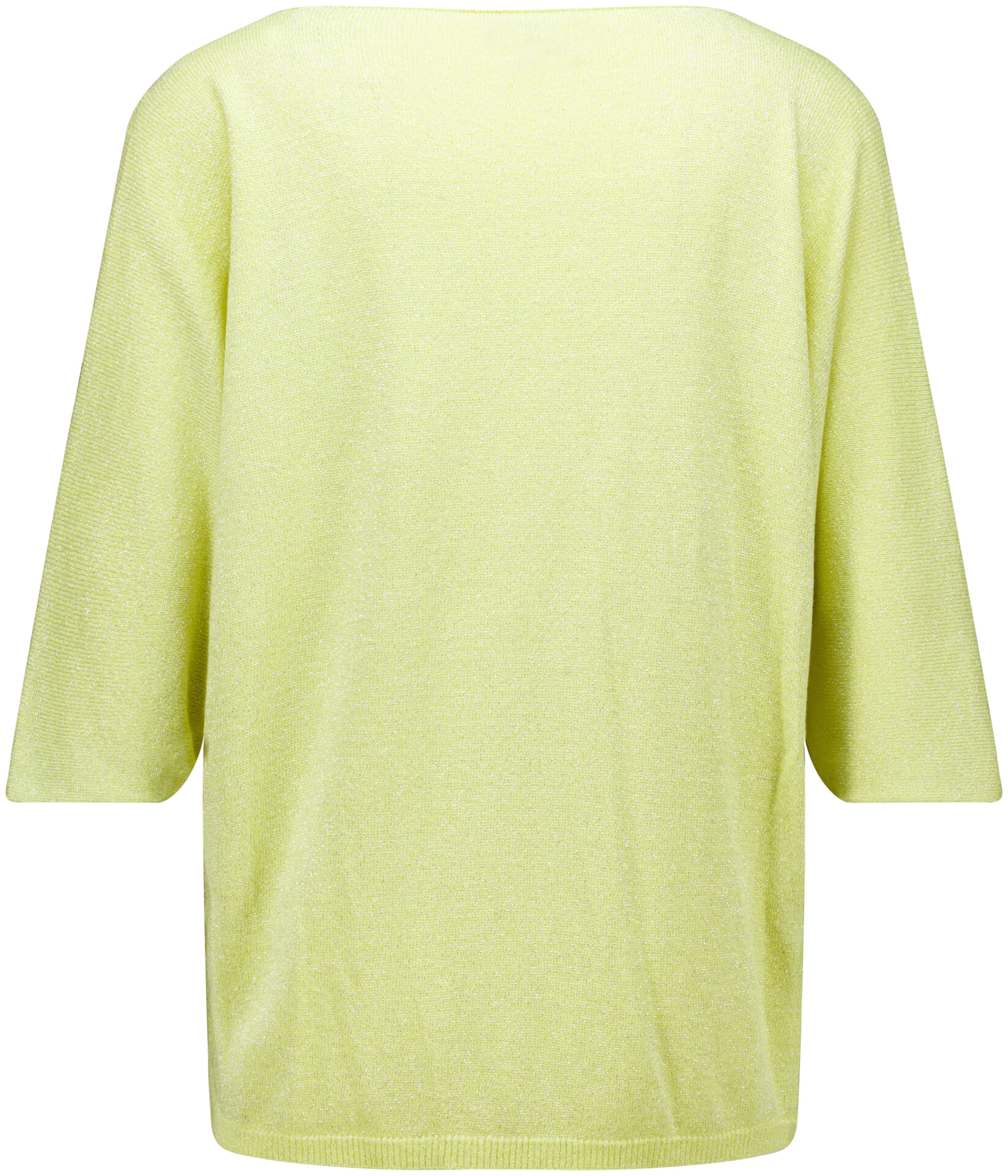 Wijdvallende top van Bomont met halve vlindermouwtjes. De top heeft een V-hals en een geribde zoom. Het metallic glitterdraadje geeft een leuk detail aan de top.