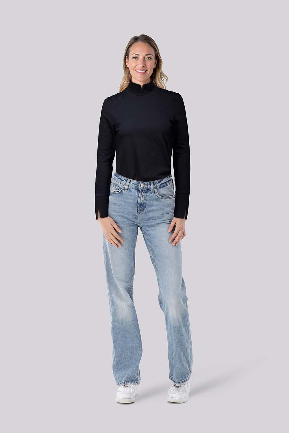 Deze Bomont longsleeve is een elegante dames top met lange mouwen, een col en een opstaande kraag. De getailleerde pasvorm accentueert subtiel het figuur. Het effen ontwerp maakt deze top een veelzijdige toevoeging aan elke garderobe. Ideaal voor zowel casual als formele gelegenheden.