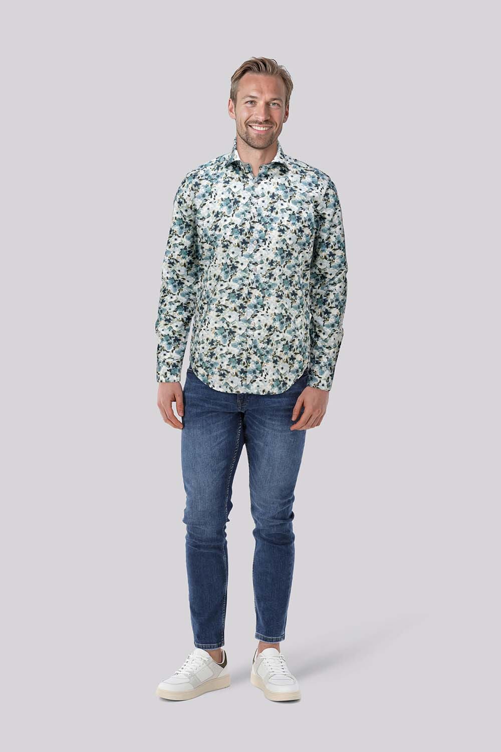 Het Overhemd Aquarel Flower van Bomont is een stijlvol heren overhemd met een bloemenpatroon. Dit casual overhemd heeft een button down kraag, lange mouwen met manchetten en zakken aan de voorzijde. Perfect voor een ontspannen en modieuze uitstraling.