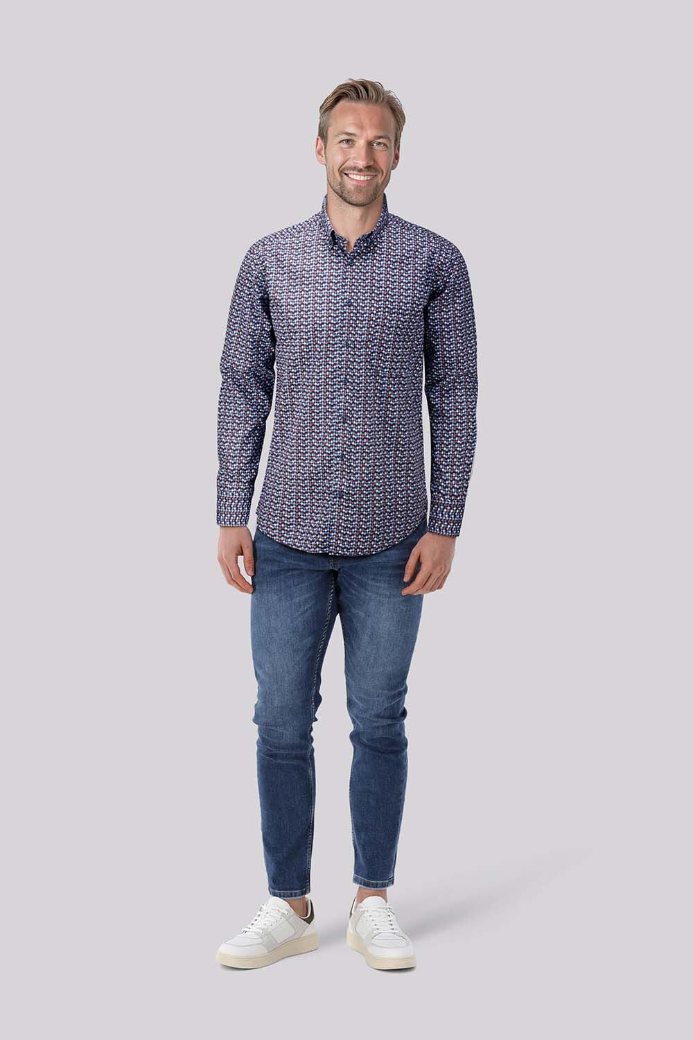 Dit stijlvolle overhemd van Bomont is perfect voor casual gelegenheden. Met een grafisch patroon, een button-down kraag, en manchetten met knopen, straalt dit heren overhemd stijl en comfort uit. De lange mouwen en de klassieke sluiting maken het compleet.