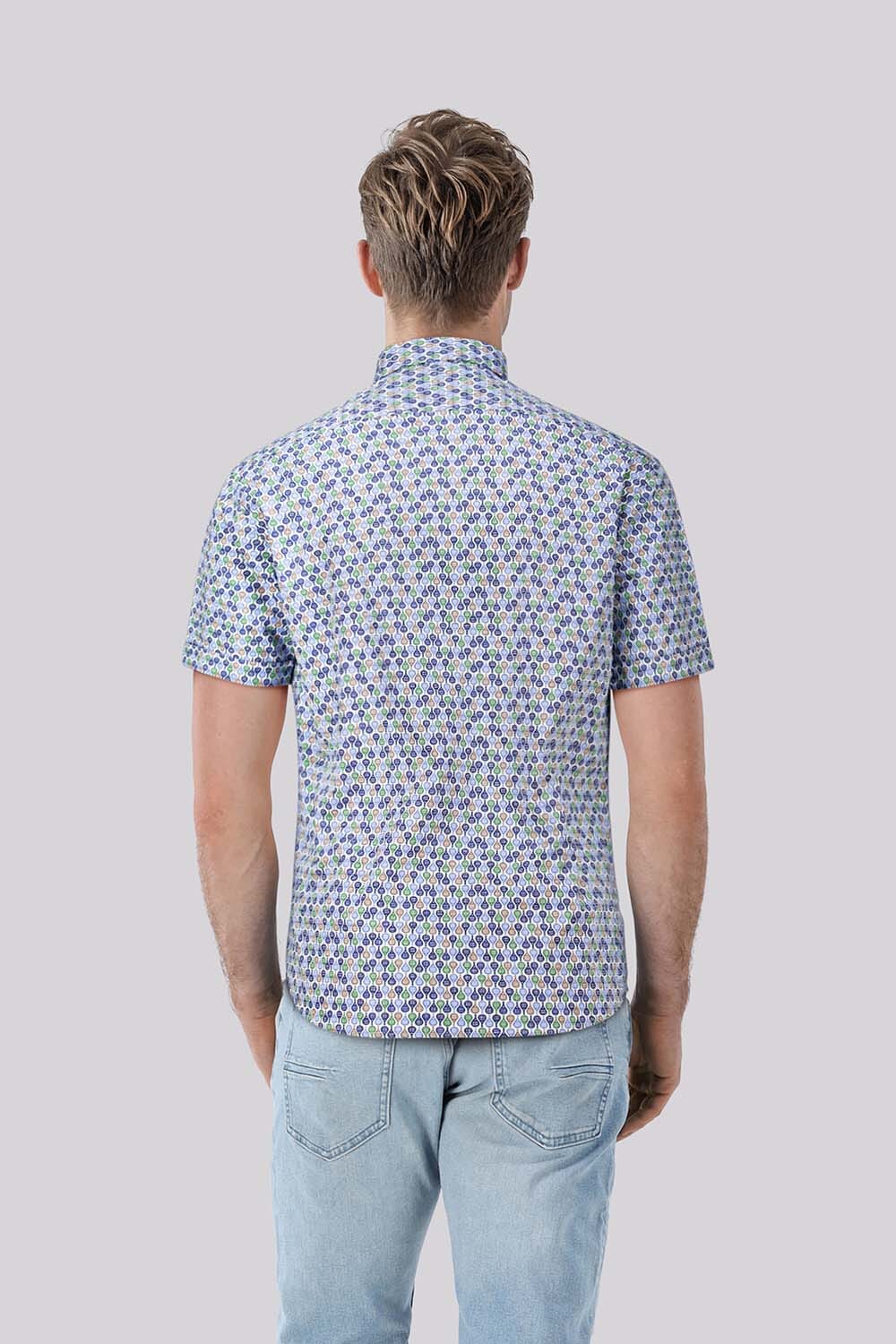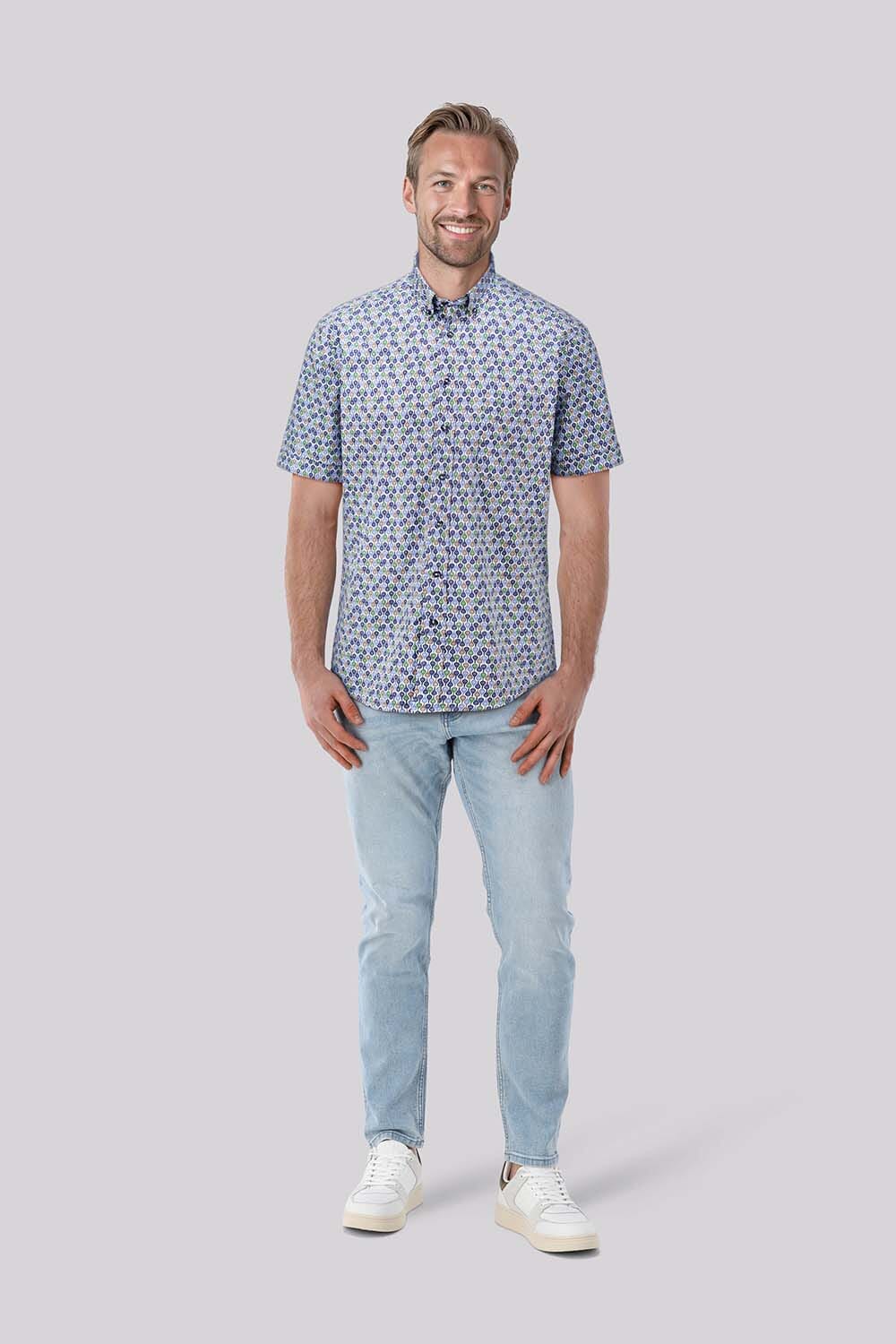 Het Bomont overhemd, een casual heren overhemd, biedt een frisse uitstraling met zijn korte mouwen en all-over patroon. De button down kraag en knoopsluiting maken het perfect voor een ontspannen dag. Combineer het met jeans voor een moeiteloze en stijlvolle look.