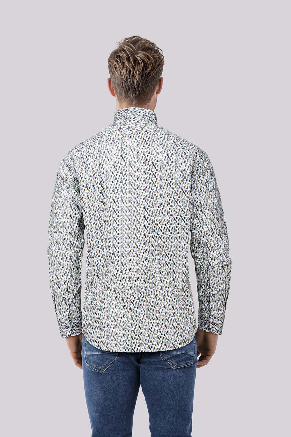 Het overhemd van Bomont, een casual heren overhemd, heeft een grafisch patroon met lange mouwen en een button down kraag. Voorzien van manchetten met knopen en een sluiting met knopen, is dit kledingstuk stijlvol en toegankelijk voor elke gelegenheid.