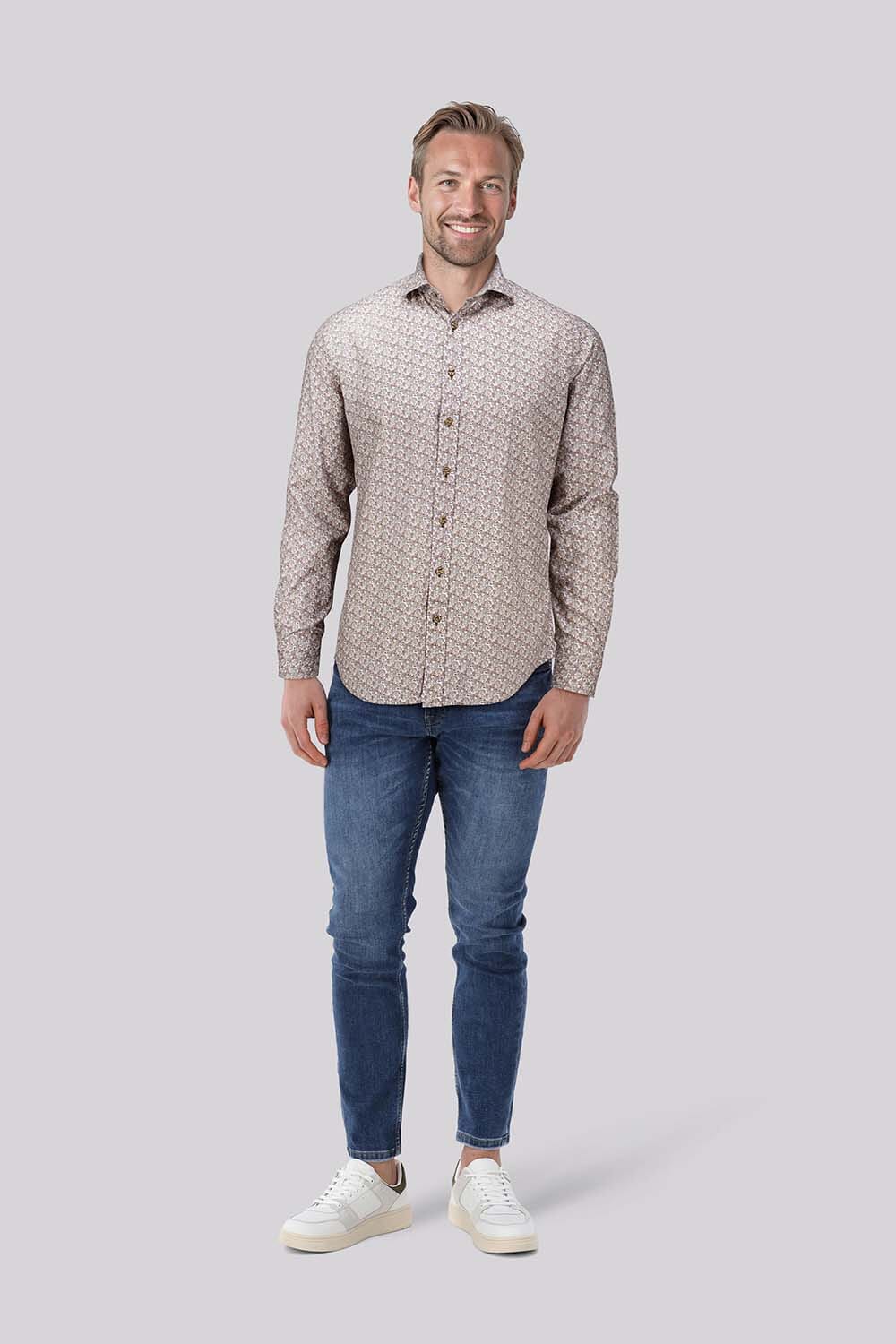 Overhemd Maes B Print van Bomont biedt casual stijl met een all-over patroon. Voorzien van een button-down kraag, lange mouwen met knoopmanchetten, en voorzakken, sluit het met knopen. Ideaal voor elke casual gelegenheid, straalt dit overhemd een toegankelijke en modieuze flair uit.