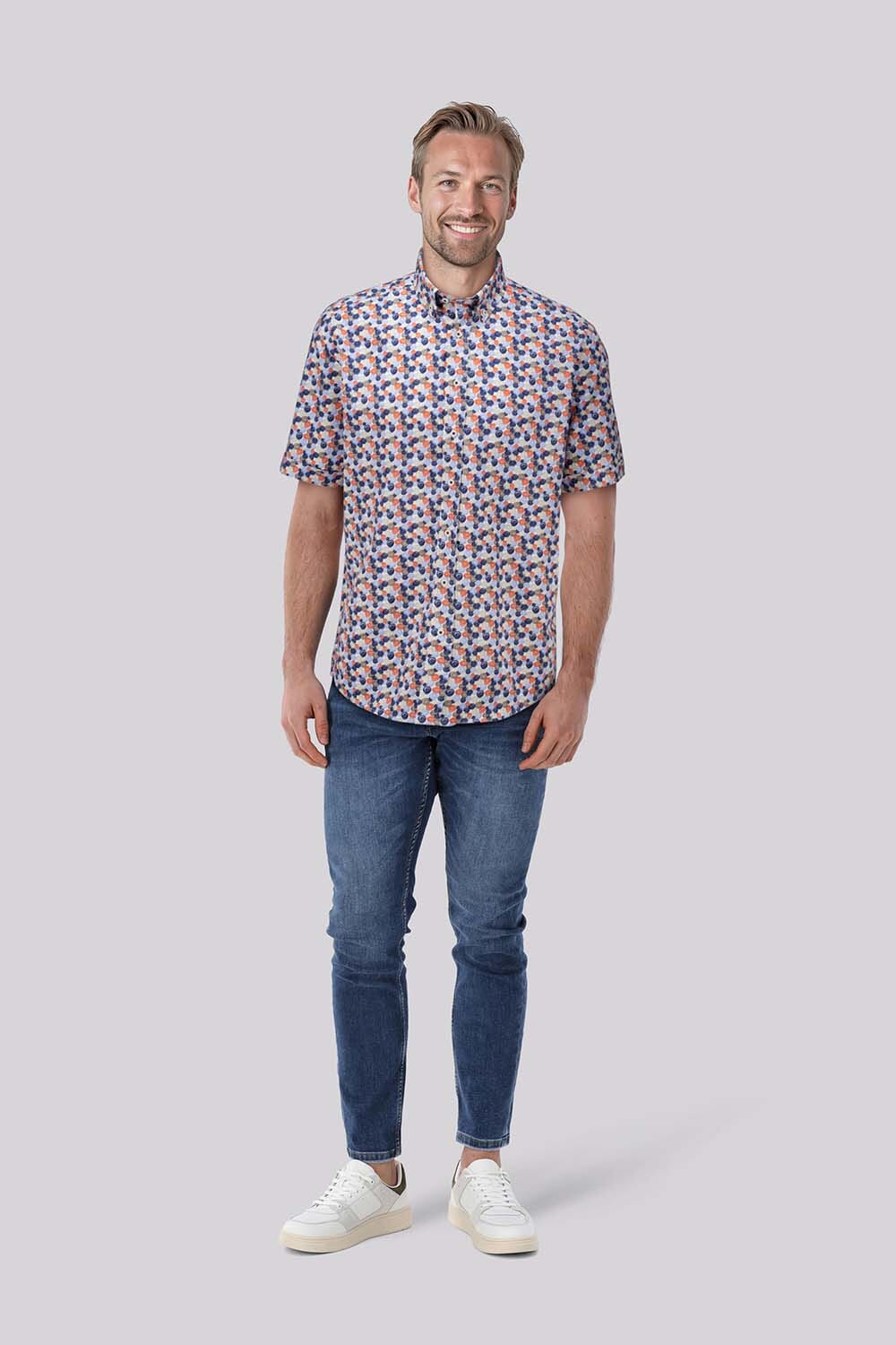 Dit overhemd van Bomont is een stijlvol heren overhemd met een all-over patroon. Het casual ontwerp heeft een button-down kraag, korte mouwen en zakken aan de voorzijde. De manchetten met knopen en de comfortabele pasvorm maken het perfect voor elke gelegenheid.