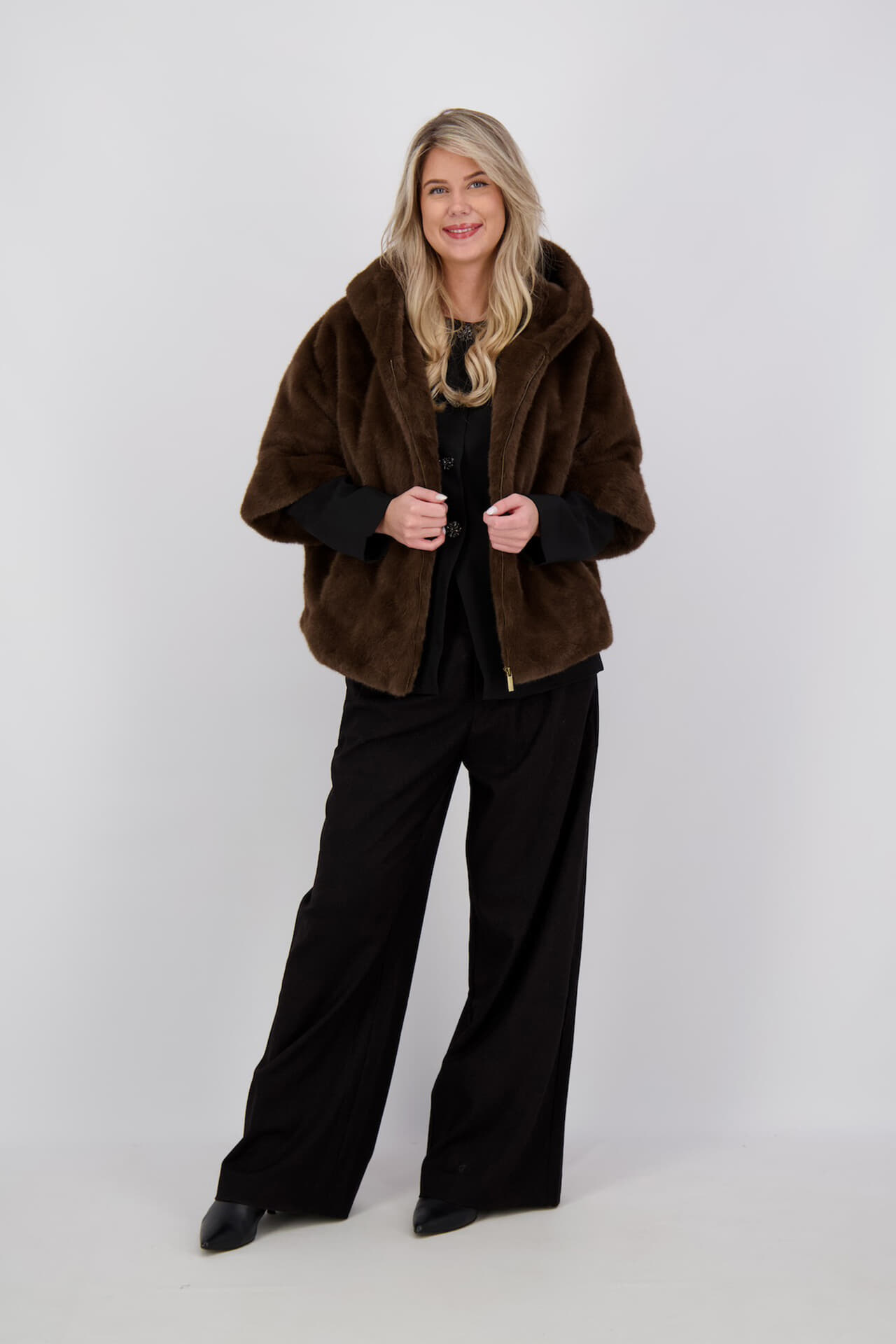 De Poncho Celia Faux Fur van Bomont is een stijlvolle tussenjas in de categorie dames poncho's. Met een capuchon en zakken aan de voorkant biedt deze poncho zowel comfort als functionaliteit. De verfijnde stijl maakt het een veelzijdige keuze voor elke gelegenheid.