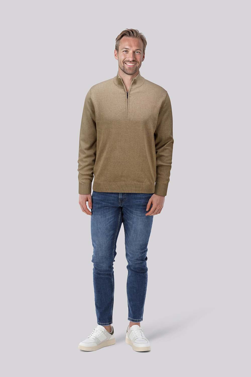 Pullover half zip Vincent trui van Bomont is een minimalistische, casual trui met opstaande kraag en korte rits. De regular pasvorm en lange mouwen met ribgebreide boorden dragen prettig, terwijl het effen, fijngebreide ontwerp strak oogt voor elke casual gelegenheid.
