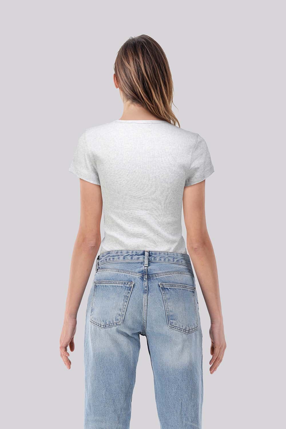 Het Rib T-shirt van Bomont is een casual dames T-shirt met een minimalistisch ontwerp. Het heeft een ronde halslijn, korte mouwen en een getailleerde pasvorm, ideaal voor een casual gelegenheid. Het effen patroon maakt het een veelzijdig kledingstuk.