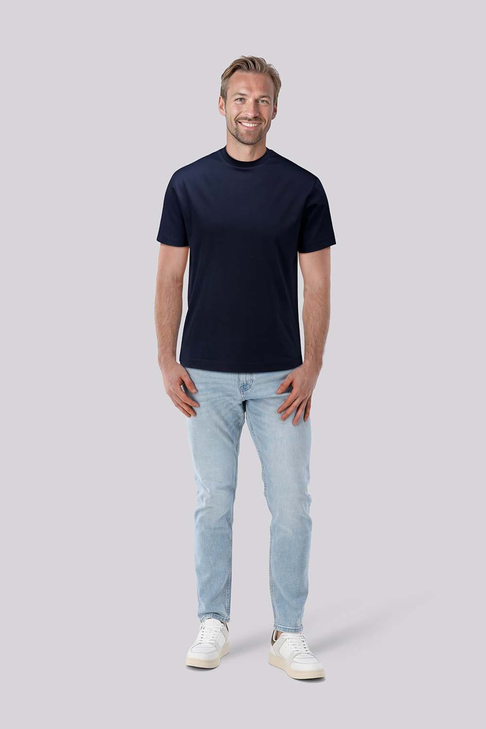 T-shirt Salerno van Bomont is een casual shirt met ronde hals, korte mouwen en een effen uitstraling. De rechte pasvorm valt comfortabel en oogt rustig. Draag het los op een jeans of onder een open overhemd voor een verzorgde, dagelijkse combinatie.