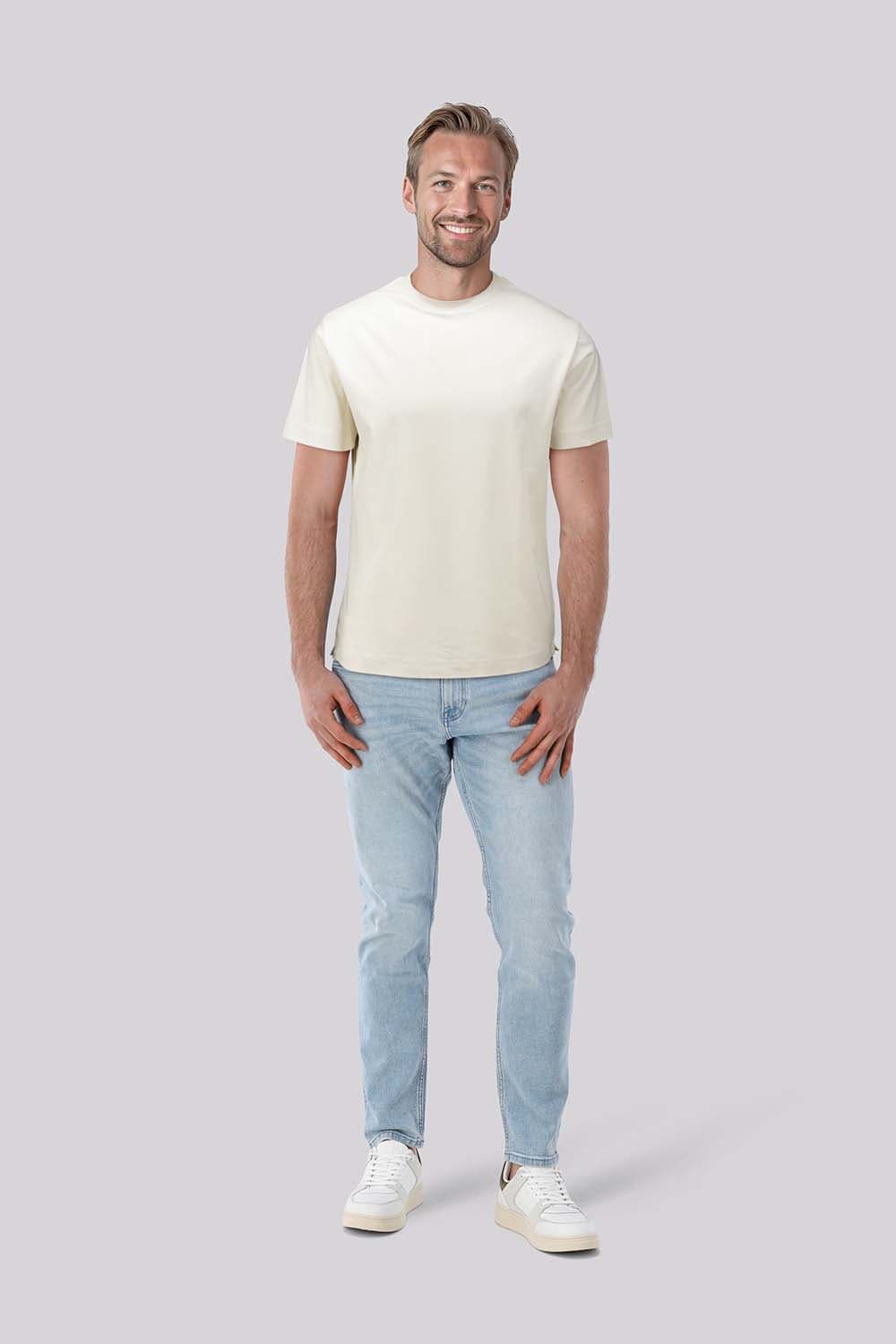 T-shirt Salerno van Bomont is een casual shirt met ronde hals, korte mouwen en een effen uitstraling. De rechte pasvorm valt comfortabel en oogt rustig. Draag het los op een jeans of onder een open overhemd voor een verzorgde, dagelijkse combinatie.