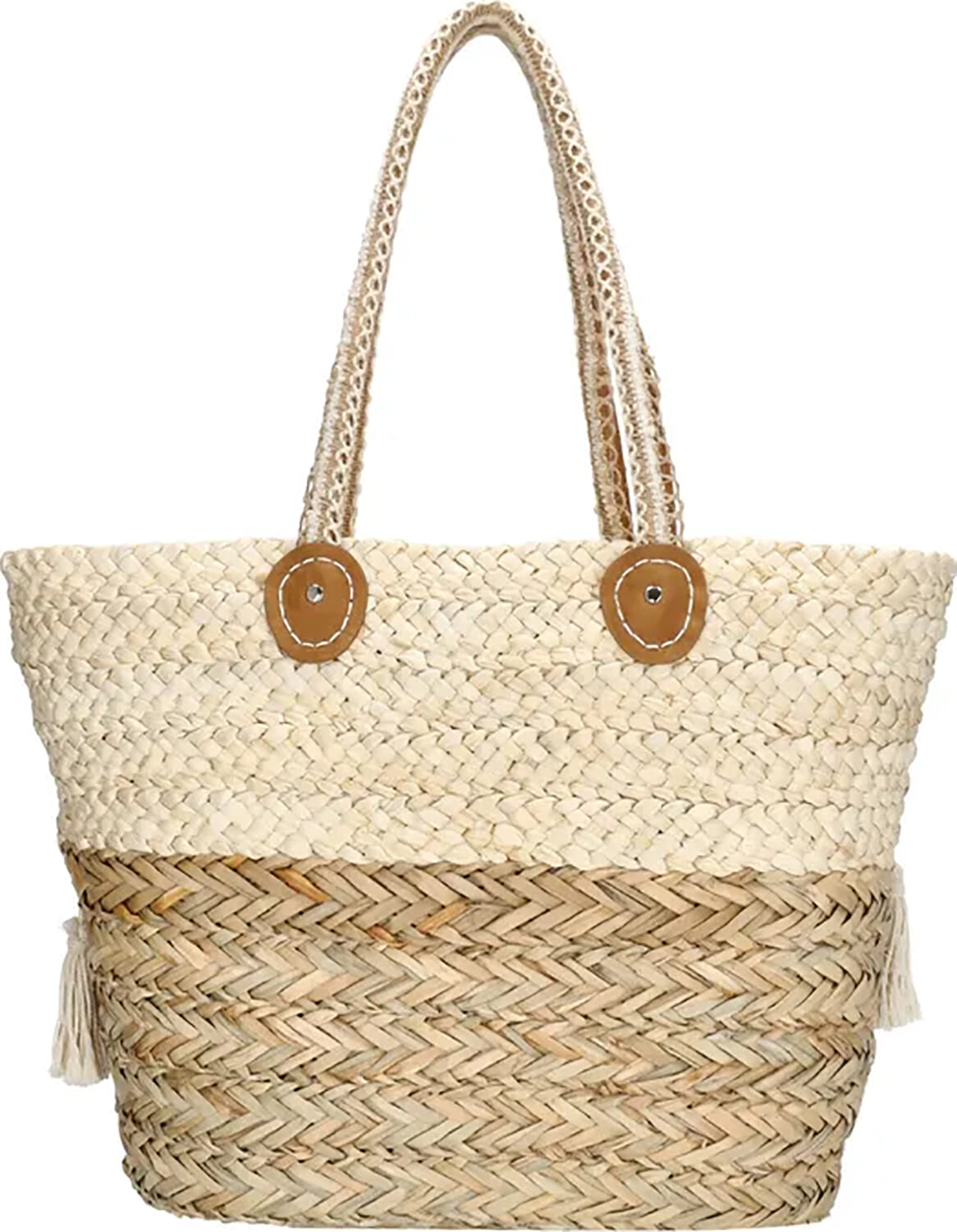 Deze prachtige tas van Bomont is een stijlvolle shopper met een bohemian flair. De tas heeft een gevlochten structuur, aangevuld met decoratieve kwastjes voor een speelse uitstraling. Ideaal voor dagelijks gebruik, biedt deze shopper voldoende ruimte voor al je essentials.
