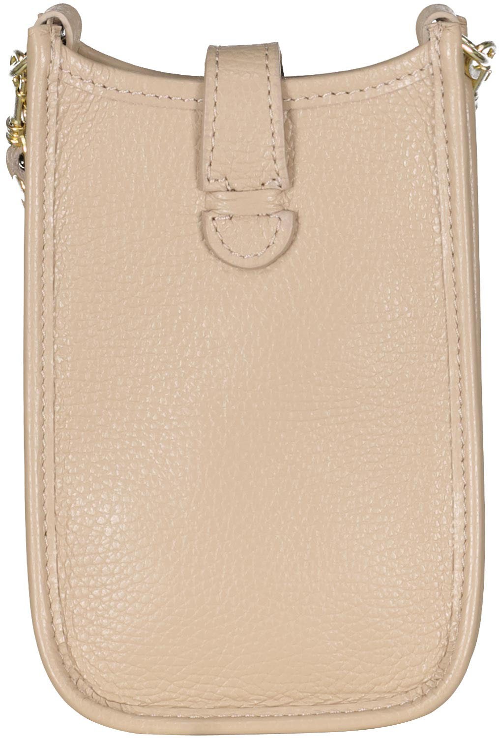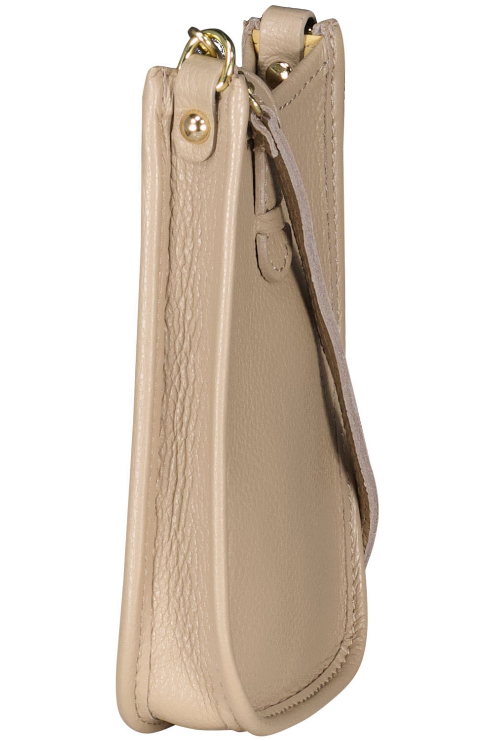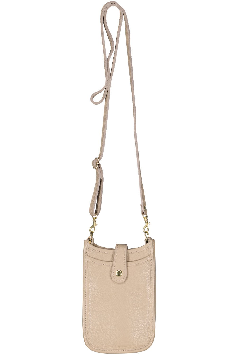Dit taupekleurige telefoontasje is super handig te combineren tijdens een dagje weg. Geen zin om een hele grote tas mee te nemen? Dan is deze perfect voor jou! Dit tasje is perfect afgesteld op het meenemen van enkel een telefoon en andere belangrijke producten, zoals pasjes of een paspoort. Het tasje sluit aan de voorzijde het met een drukknop. De binnenzijde bevat een hoofdvak en een extra steekvak. Bij het tasje komt een verstelbaar hengsel waarmee je hem om kan hangen.