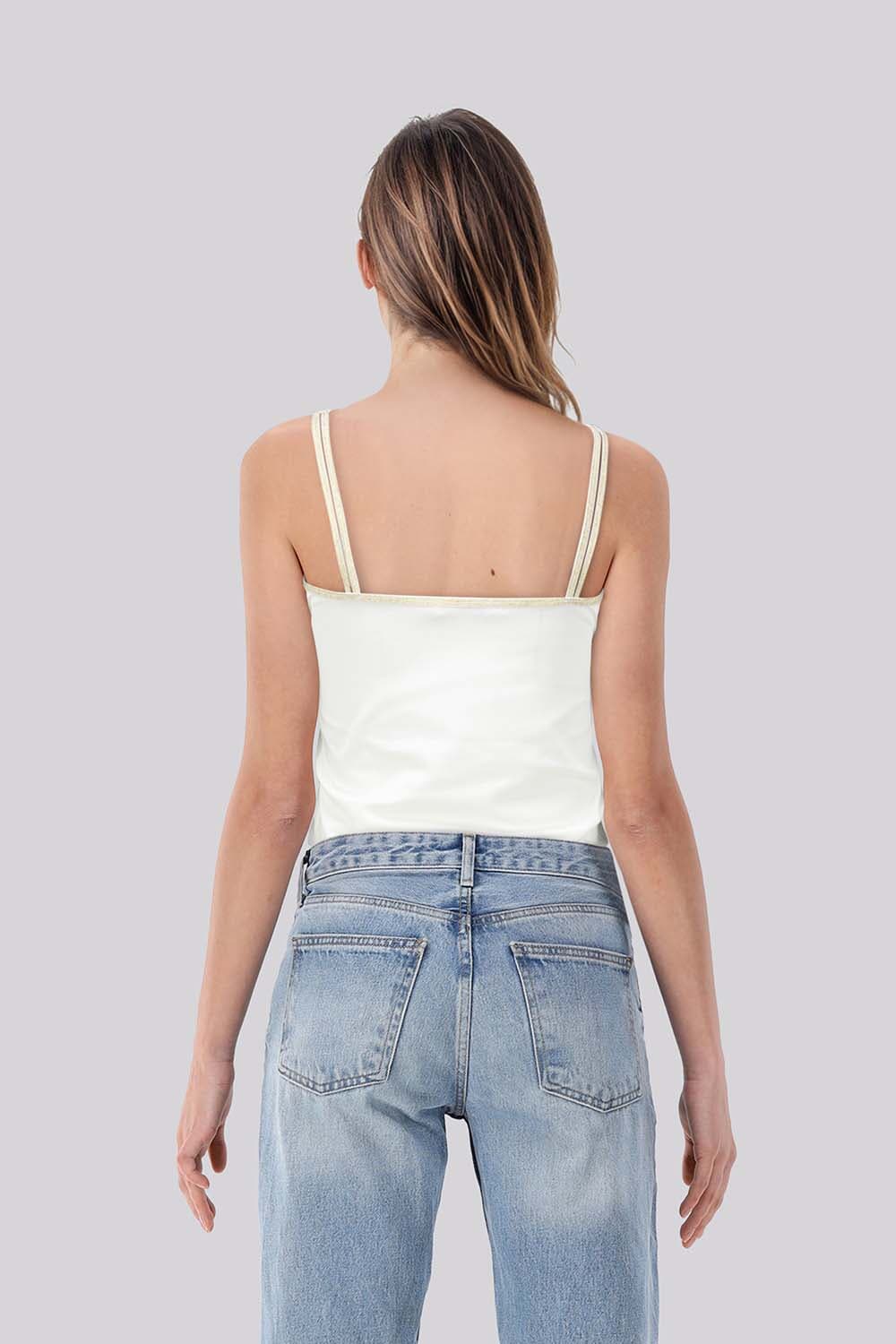 De Lurex strap top van Bomont is een stijlvolle en comfortabele top zonder mouwen. Met een elegante U-hals en een getailleerde pasvorm, is deze effen casual top ideaal voor een relaxte dag. De top is veelzijdig en makkelijk te combineren met verschillende outfits.