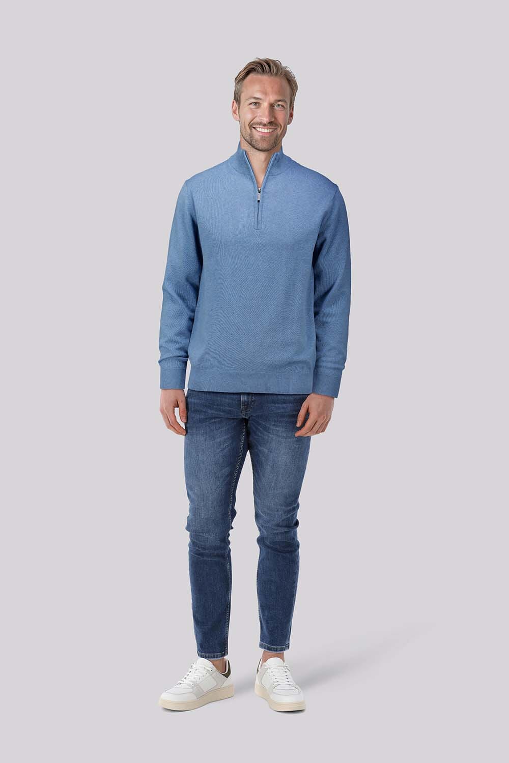 De trui van Bomont is een stijlvolle herentrui met een opstaande kraag en rits. Het ribgebreide mouwboord en de lange mouwen zorgen voor een comfortabele pasvorm. Deze casual trui met effen patroon is perfect voor elke gelegenheid en geeft een moderne touch.