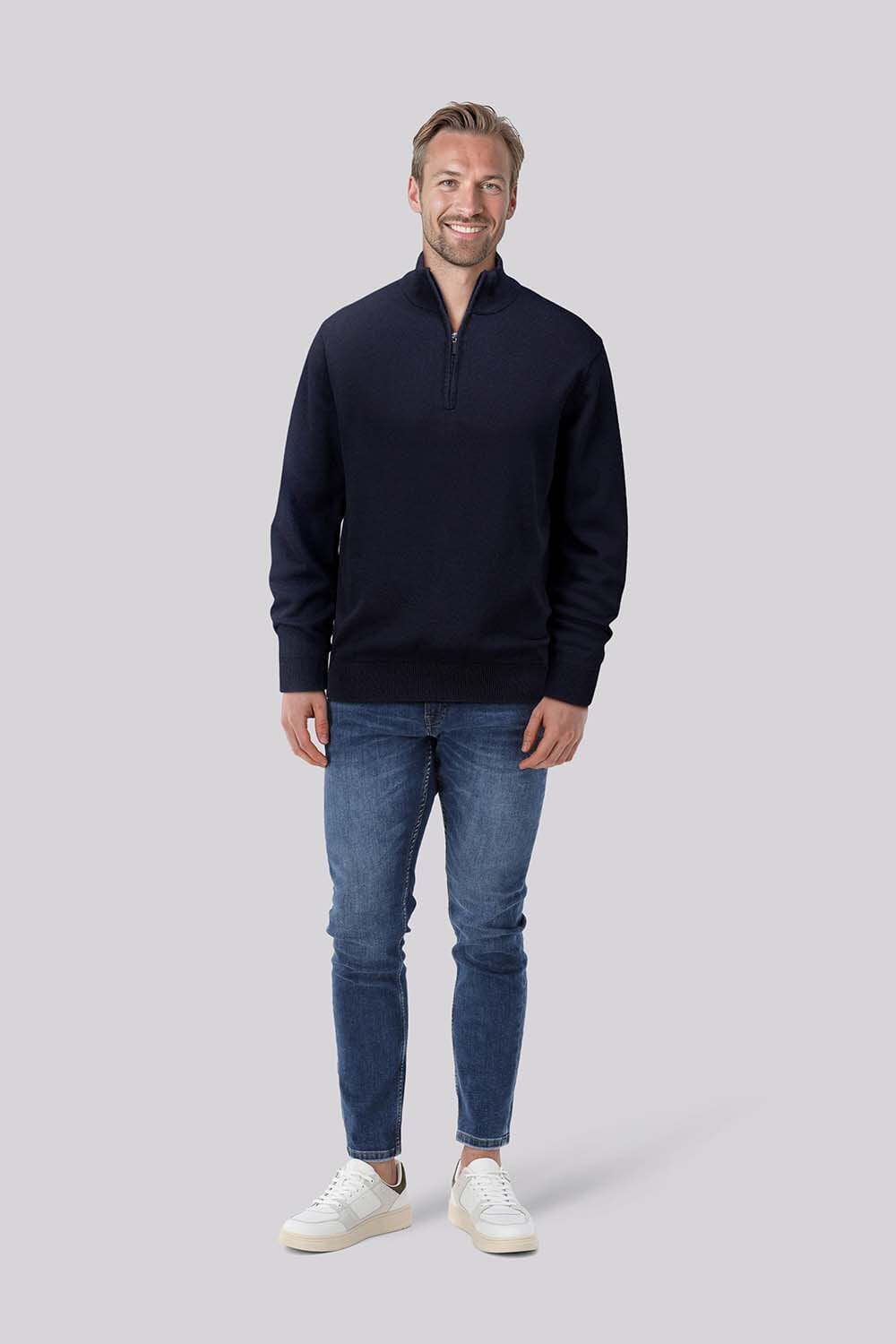 De trui van Bomont is een stijlvolle herentrui met een opstaande kraag en rits. Het ribgebreide mouwboord en de lange mouwen zorgen voor een comfortabele pasvorm. Deze casual trui met effen patroon is perfect voor elke gelegenheid en geeft een moderne touch.
