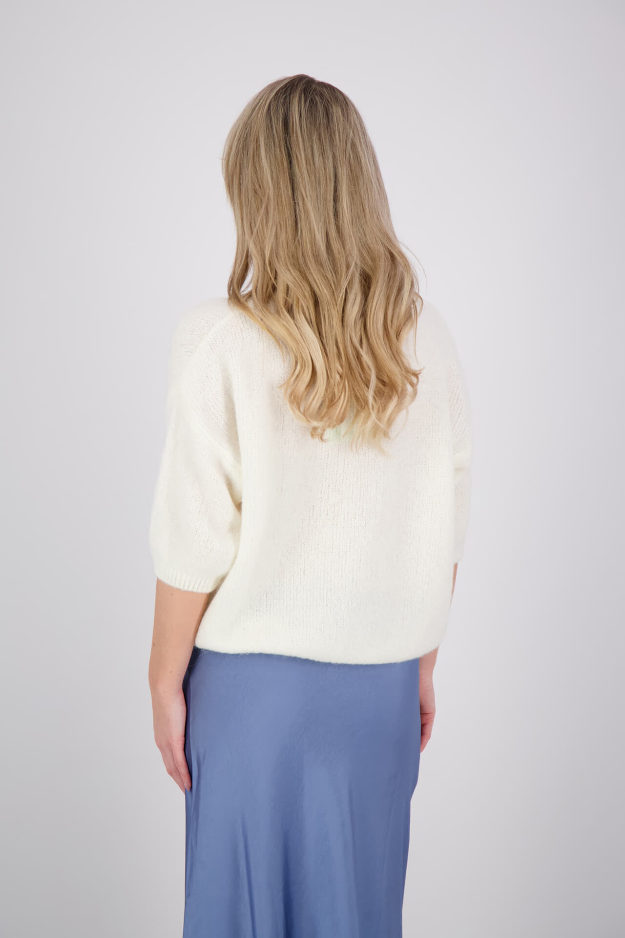 Vest Femme Chic van Bomont is een trui met casual, minimalistische uitstraling, effen design en ronde hals. De oversized pasvorm en korte mouwen zorgen voor een relaxte fit, terwijl de knoopsluiting en geribde boorden een nette afwerking geven. Zacht, licht en makkelijk te combineren.