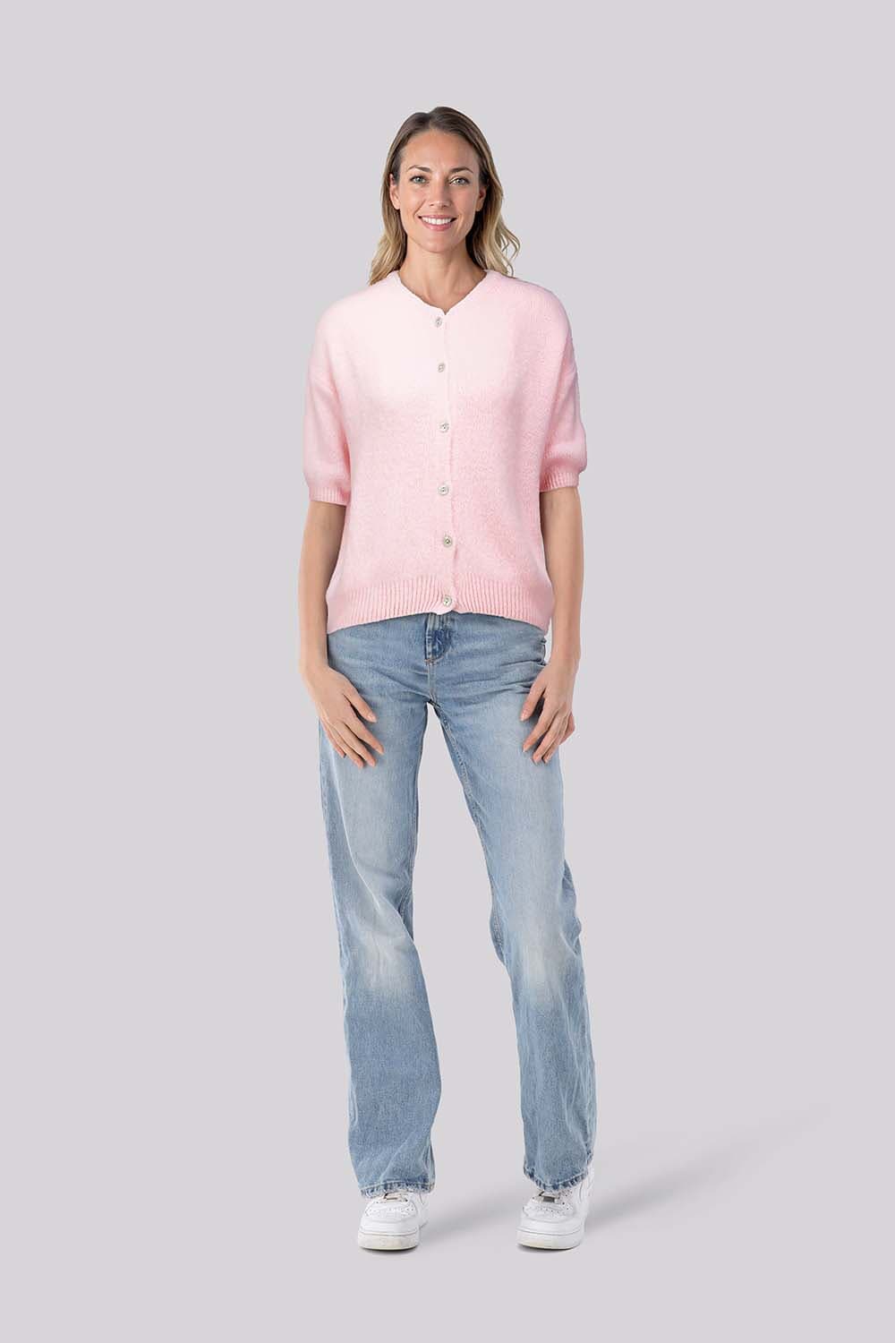 Vest Femme Chic van Bomont is een trui met casual, minimalistische uitstraling, effen design en ronde hals. De oversized pasvorm en korte mouwen zorgen voor een relaxte fit, terwijl de knoopsluiting en geribde boorden een nette afwerking geven. Zacht, licht en makkelijk te combineren.