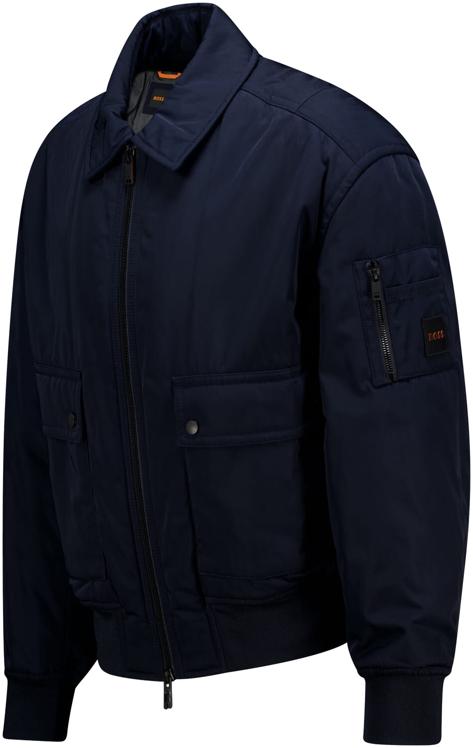 De Bomberjack Oking van BOSS ORANGE is een stijlvol heren bomberjack. Voorzien van een spreidkraag, zakken op de voorzijde en ribgebreide mouwboorden. De rits zorgt voor een comfortabele sluiting. Ideaal voor casual gelegenheden, waarbij stijl en comfort centraal staan.