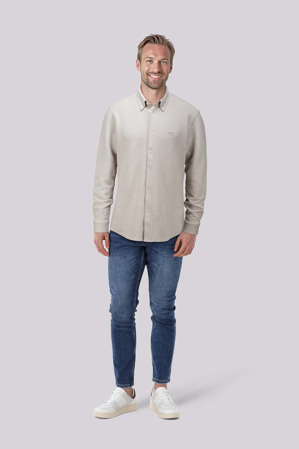 Overhemd van Boss Orange, een stijlvol heren overhemd met lange mouwen en button down kraag. Dit effen business overhemd is voorzien van manchetten met knopen en een knoopsluiting, ideaal voor nette gelegenheden. Combineer met een vest voor een tijdloze en professionele uitstraling.
