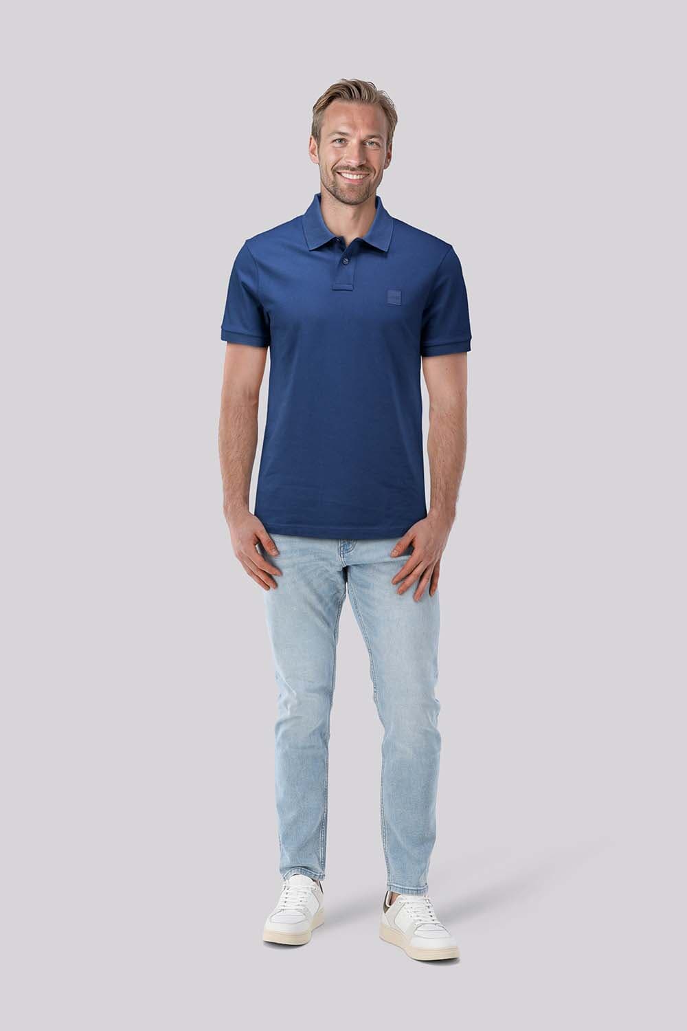 Polo Slim Fit Passenger polo van Boss Orange combineert casual en netjes met een regular pasvorm. De polokraag, korte mouwen en knoopsluiting geven een verzorgde uitstraling. Effen ontwerp met subtiel logo op de borst. Draag met chino voor werk of jeans voor vrije tijd.