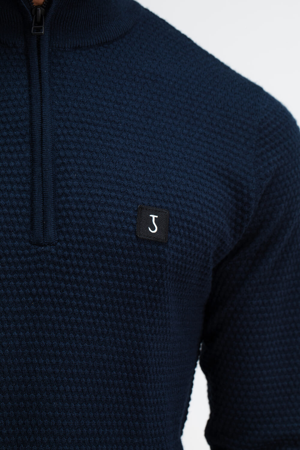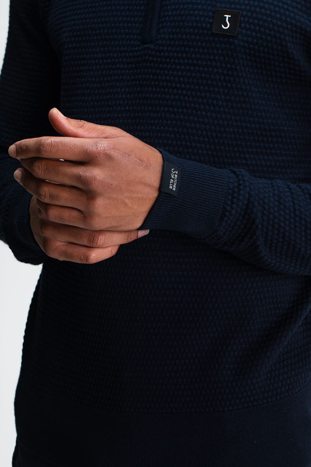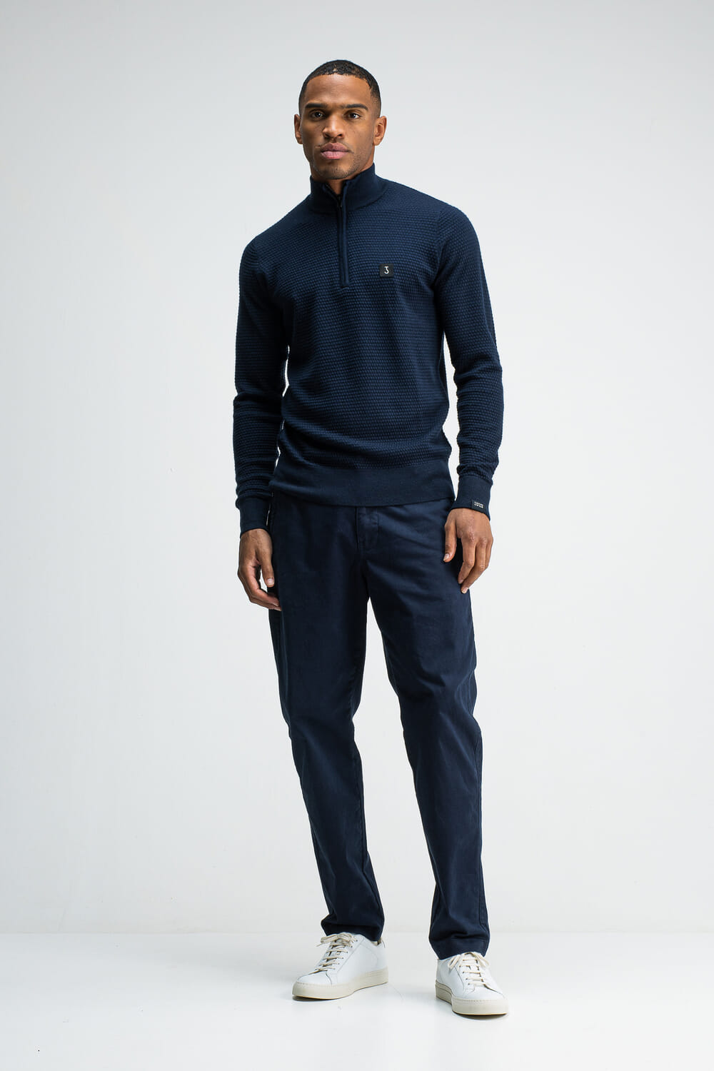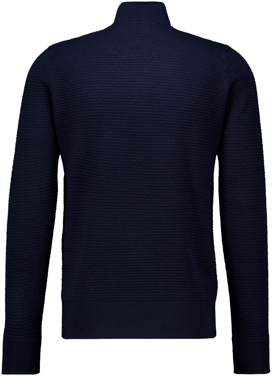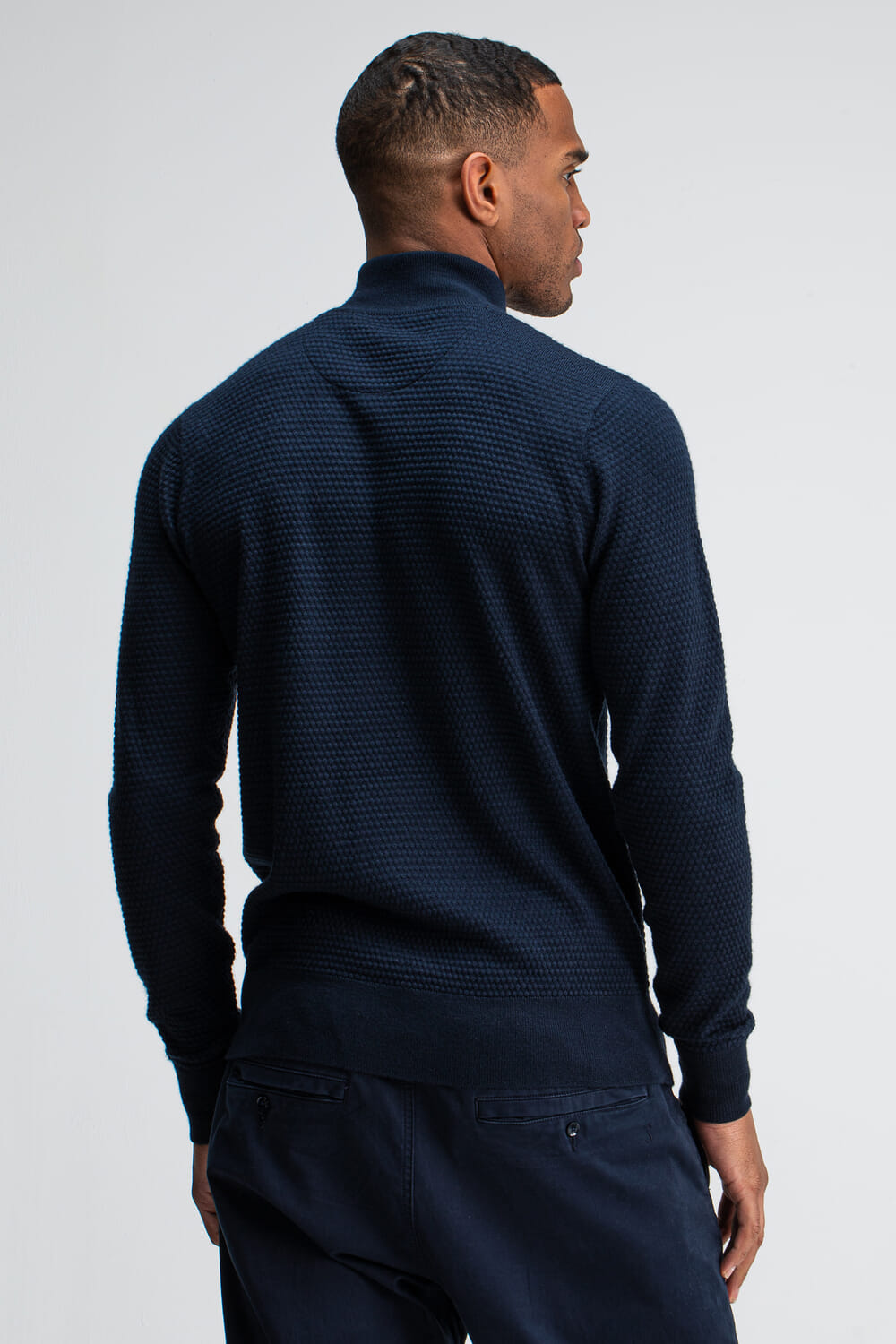 De Halfzip-trui Structure van Butcher of Blue is een stijlvolle heren trui met een opstaande kraag en rits. De trui heeft ribgebreide mouwboorden, lange mouwen en een effen patroon, wat zorgt voor een casual en toch verfijnde uitstraling.