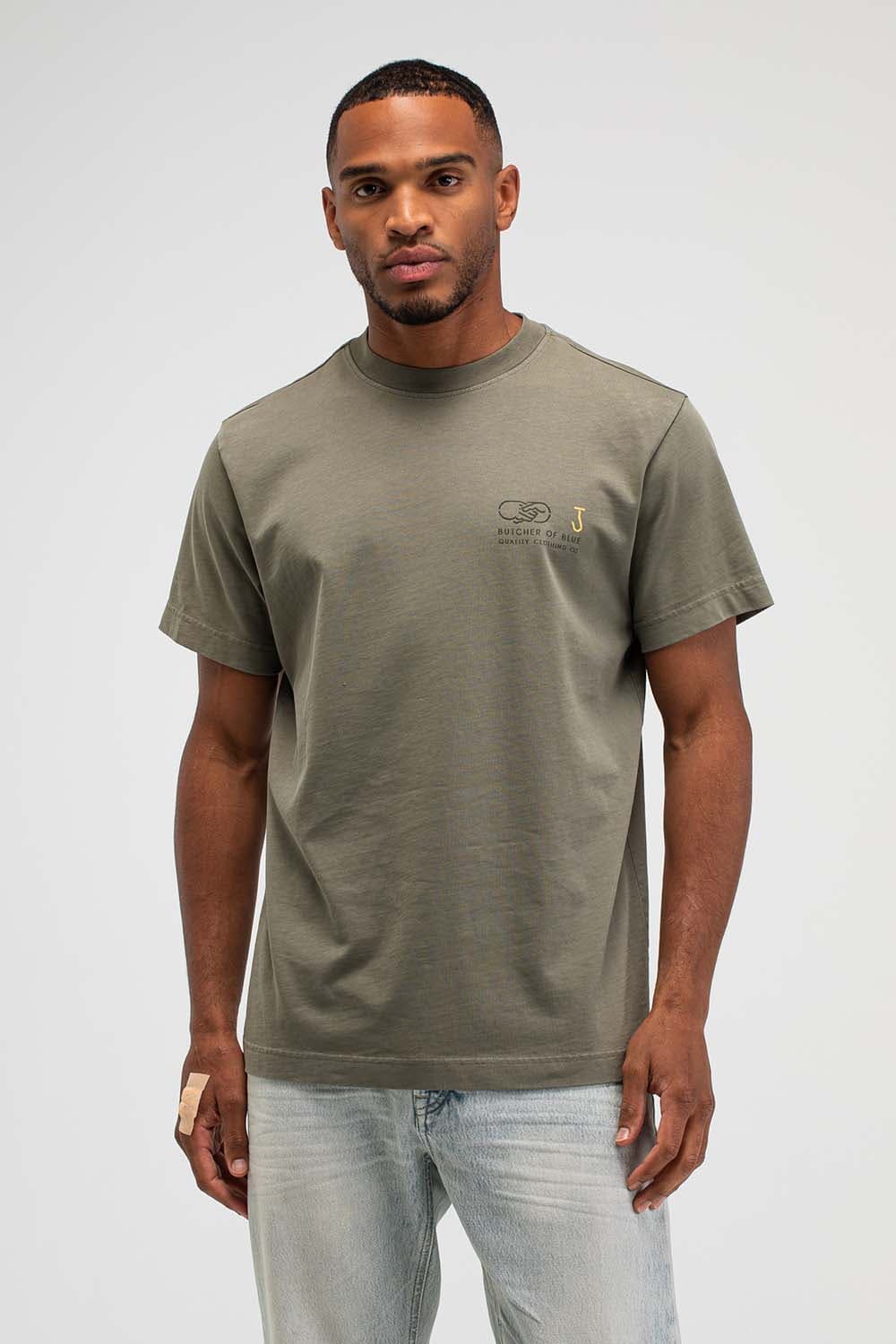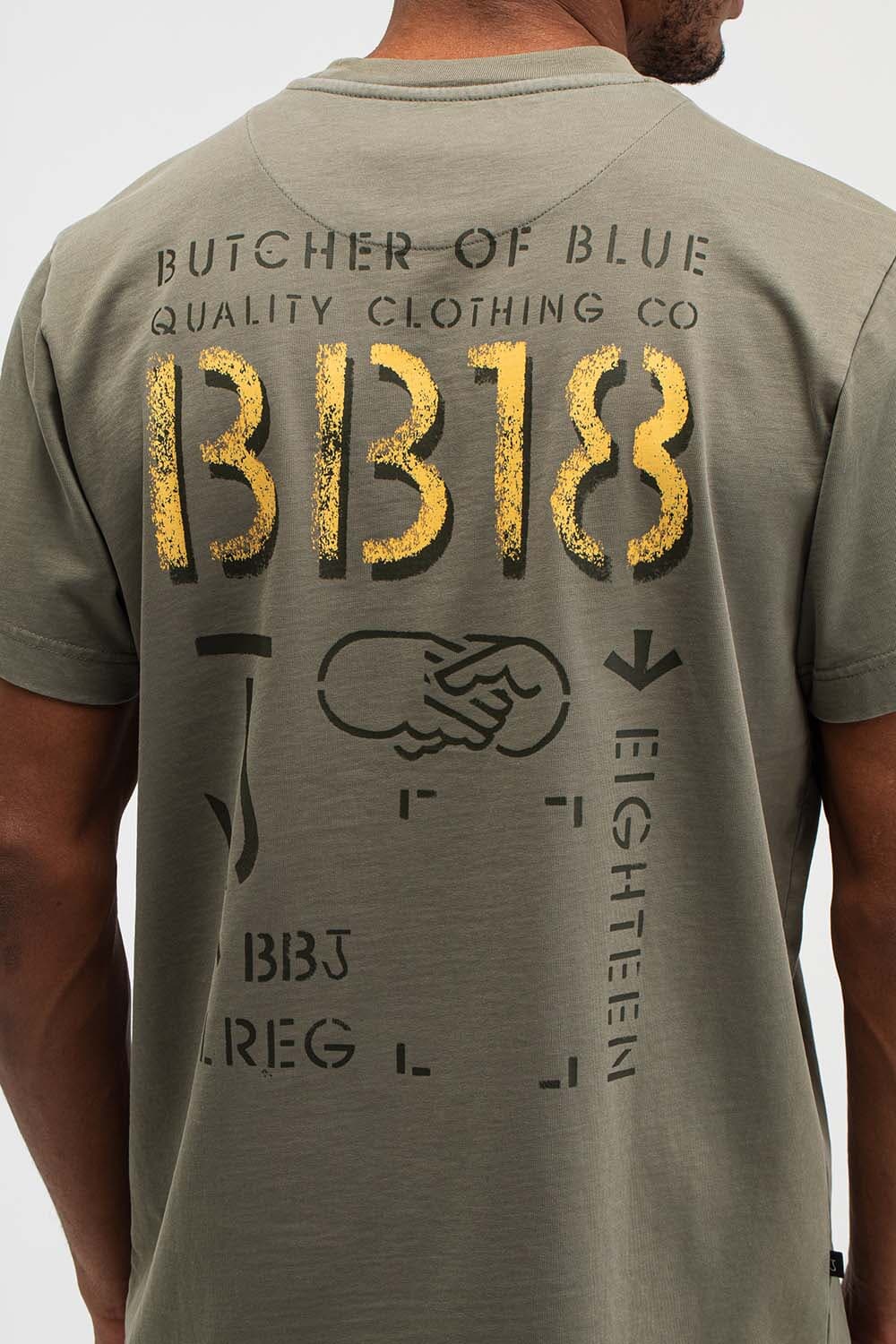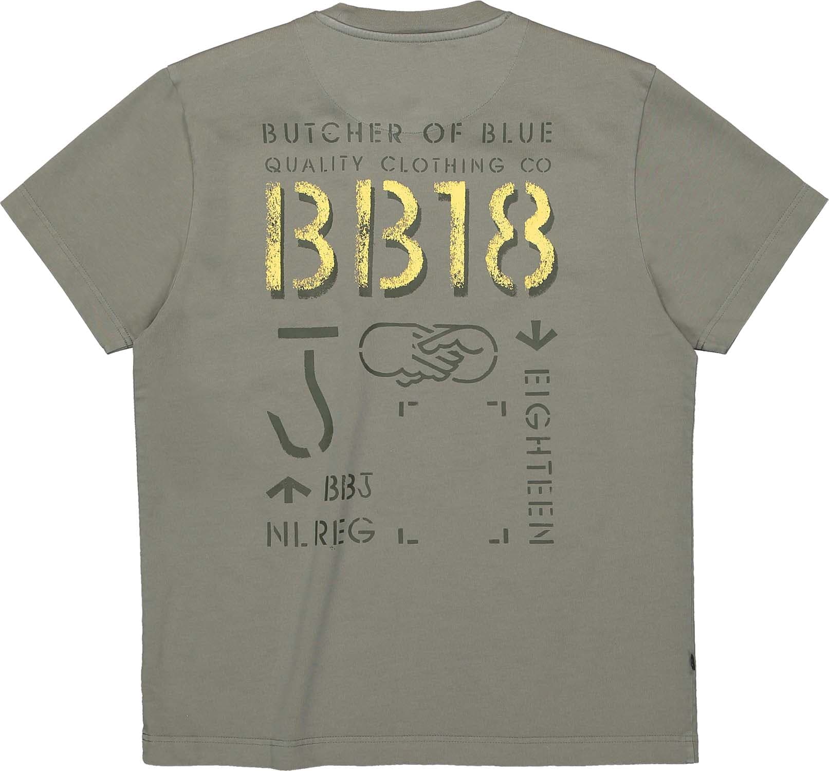 T-shirt van Butcher of Blue met ronde hals, korte mouwen en casual pasvorm. Het logo op de borst is subtiel, terwijl de grote rugprint met BB18, typografie en handdruk-illustratie zorgt voor karakter. Draag met jeans of chino en sneakers voor een relaxte set.
