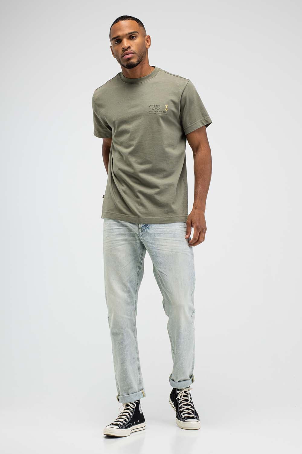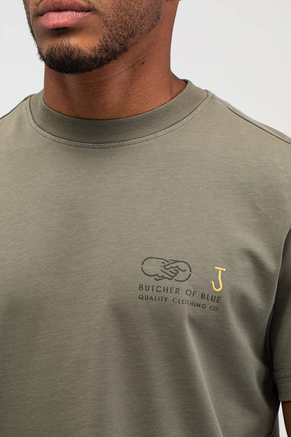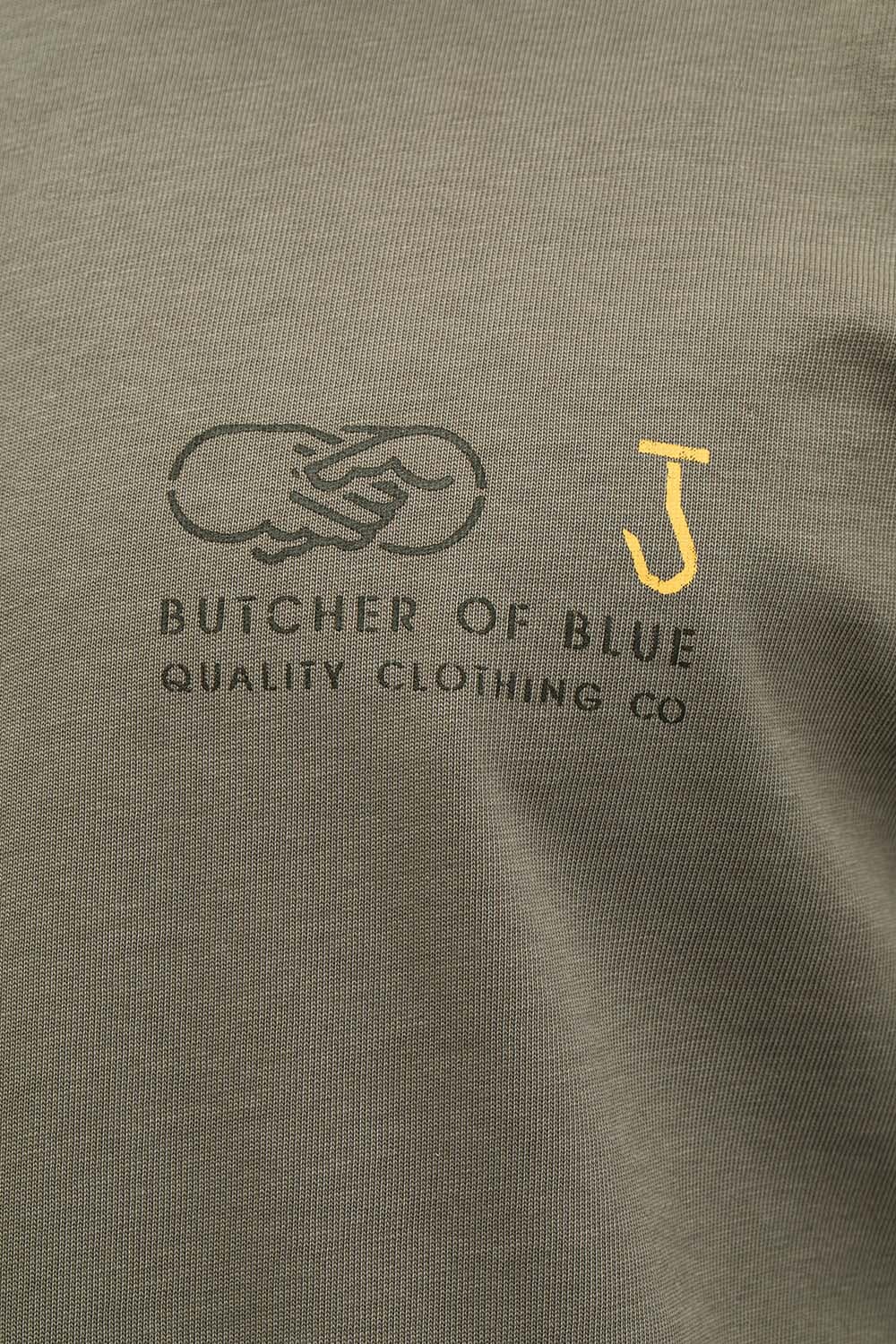 T-shirt van Butcher of Blue met ronde hals, korte mouwen en casual pasvorm. Het logo op de borst is subtiel, terwijl de grote rugprint met BB18, typografie en handdruk-illustratie zorgt voor karakter. Draag met jeans of chino en sneakers voor een relaxte set.