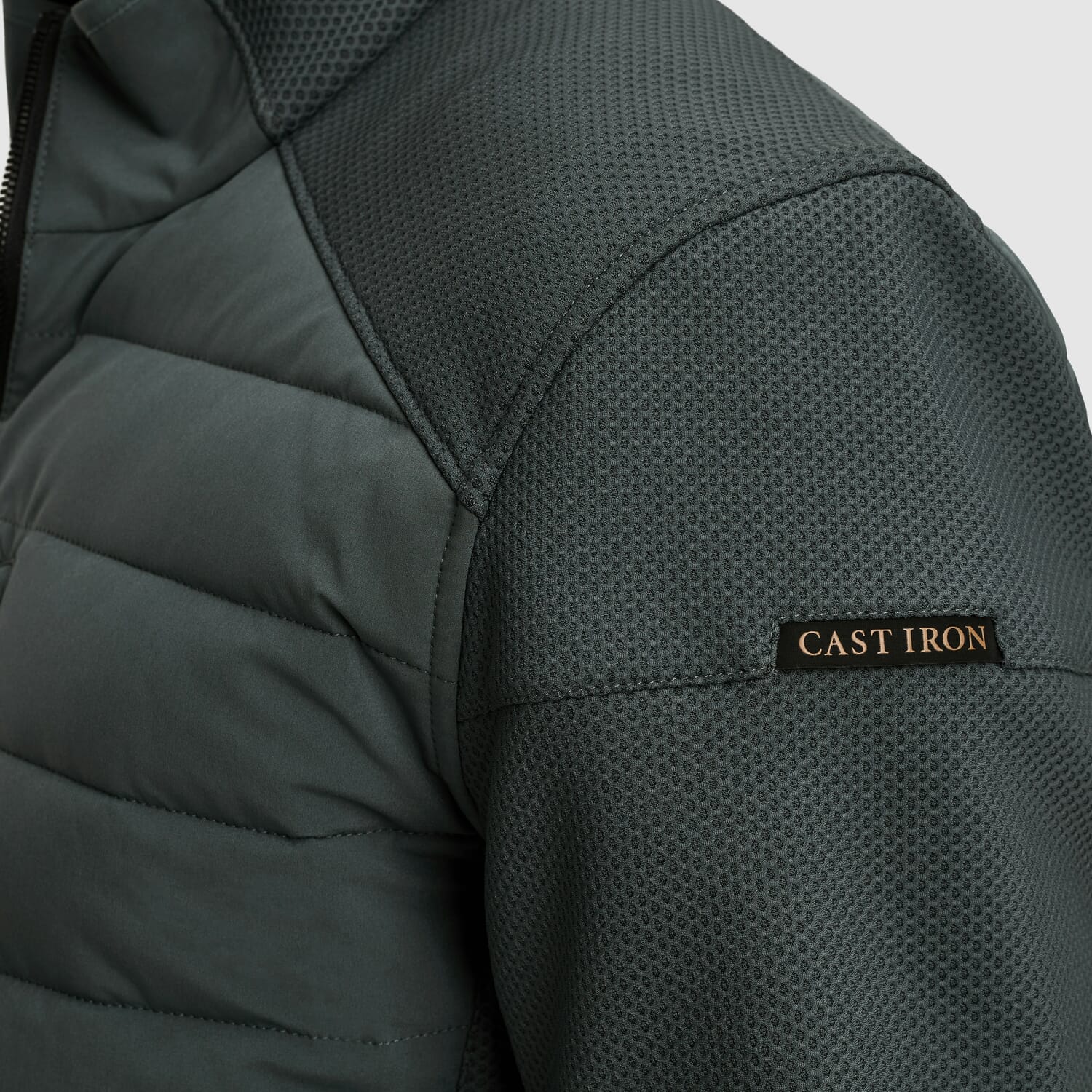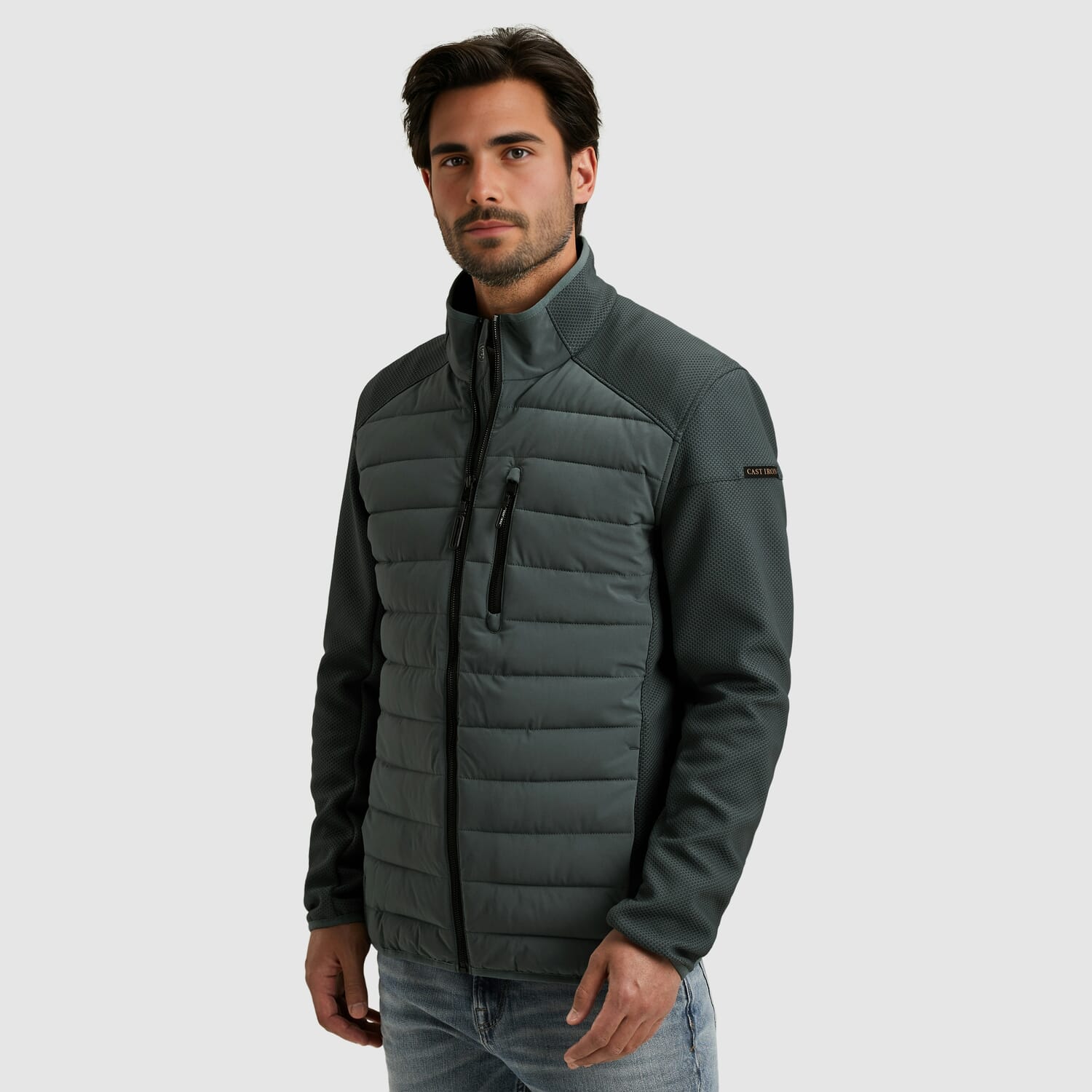 De Cast Iron Revalve hybrid jas is een stijlvolle toevoeging aan je garderobe en ideaal voor het tussenseizoen. Deze moderne tussenjas is gemaakt van een tweelaagse softshell en voorzien van een lichte Tech Down voering, wat zorgt voor optimaal draagcomfort. De elastische zoom en manchetten sluiten goed aan en houden de kou buiten. De mouwen van mesh met een zachte fleecevoering geven de jas een eigentijdse uitstraling en maken hem waterafstotend en winddicht. Praktische details zoals zijzakken met verborgen drukknoopsluiting, een borstzak met rits en twee binnenzakken met klittenbandsluiting maken het ontwerp functioneel én stijlvol. De kenmerkende Cast Iron accenten ronden het geheel op karakteristieke wijze af.