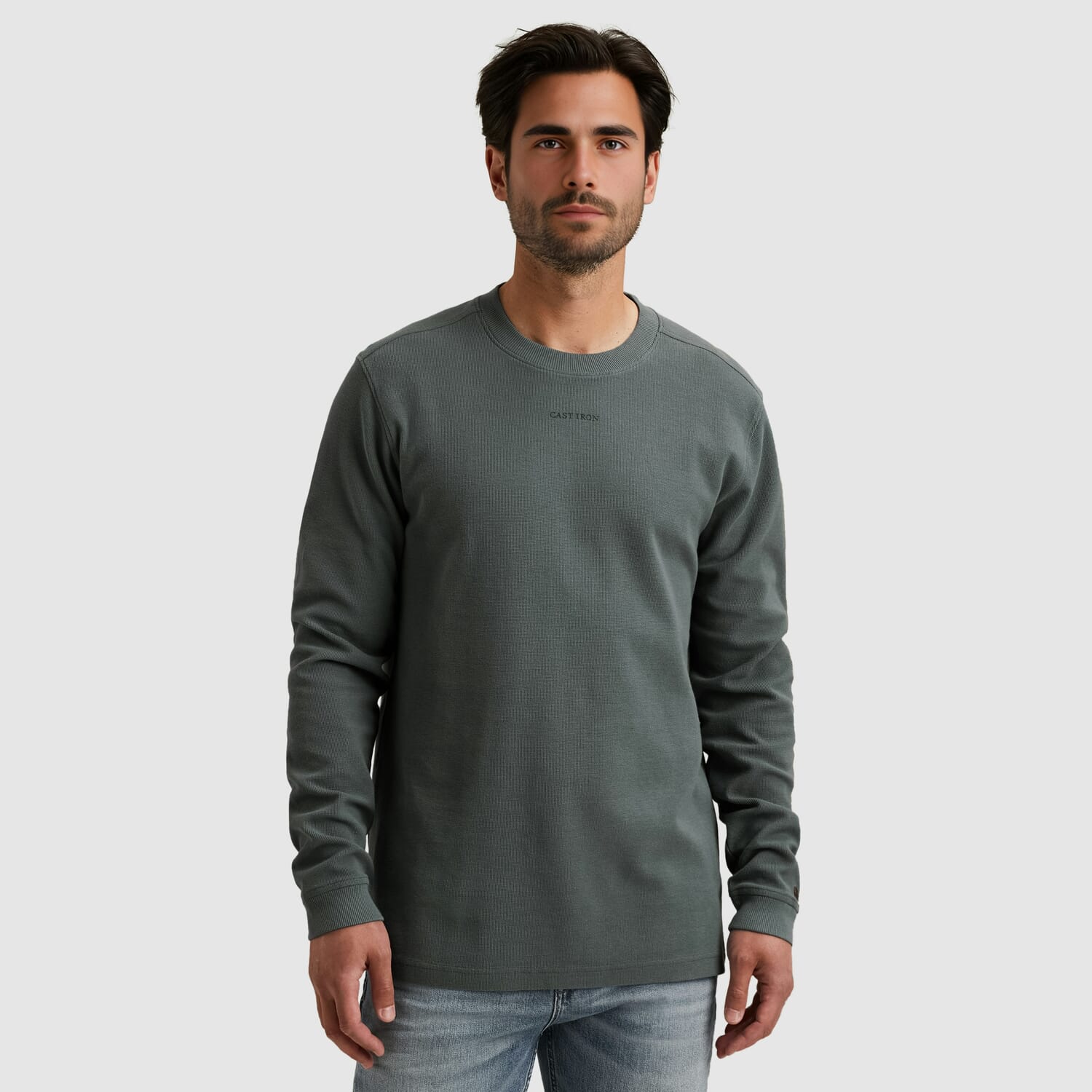 De longsleeve van Cast Iron is een casual heren longsleeve met een effen patroon en ribgebreide mouwboorden. De regular pasvorm en lange mouwen maken het een comfortabele keuze voor elke gelegenheid. Ideaal voor een ontspannen dag, stijlvol en functioneel tegelijk.