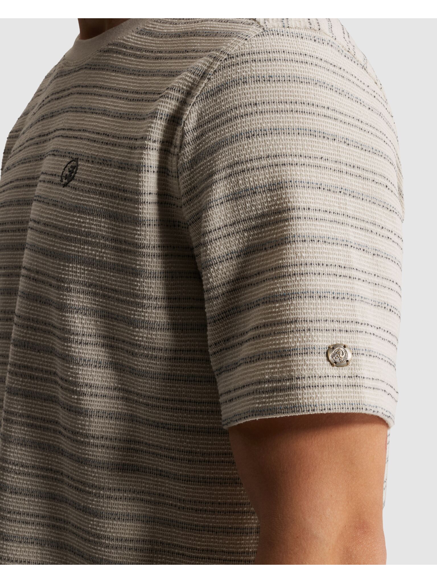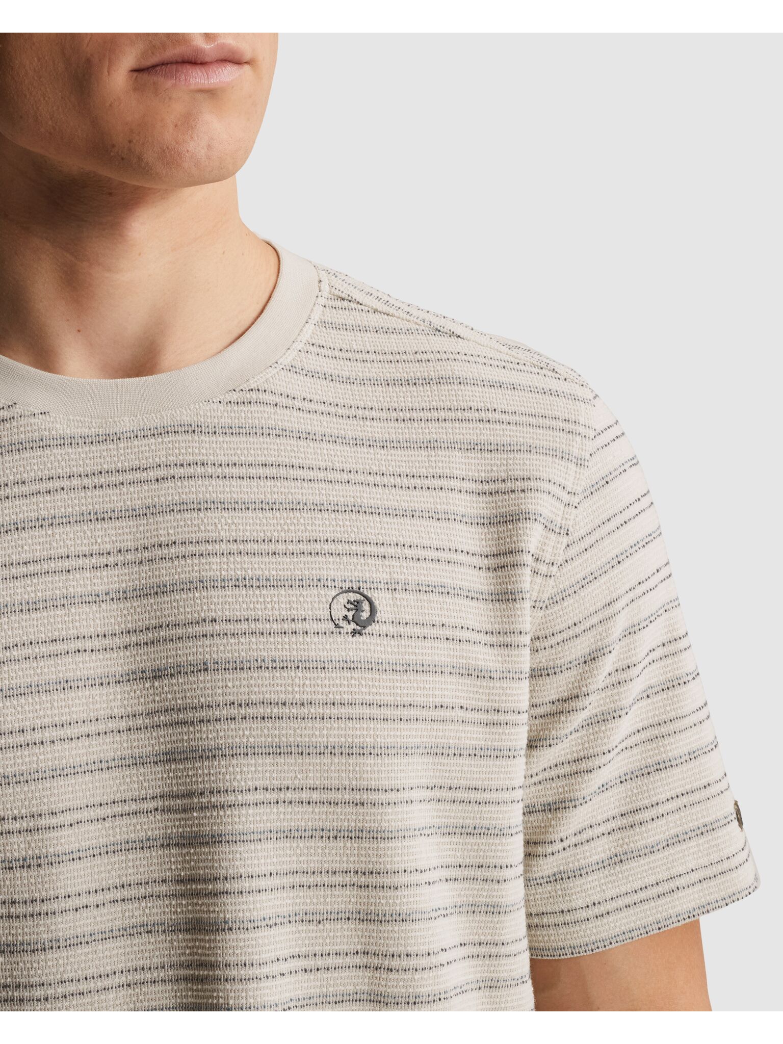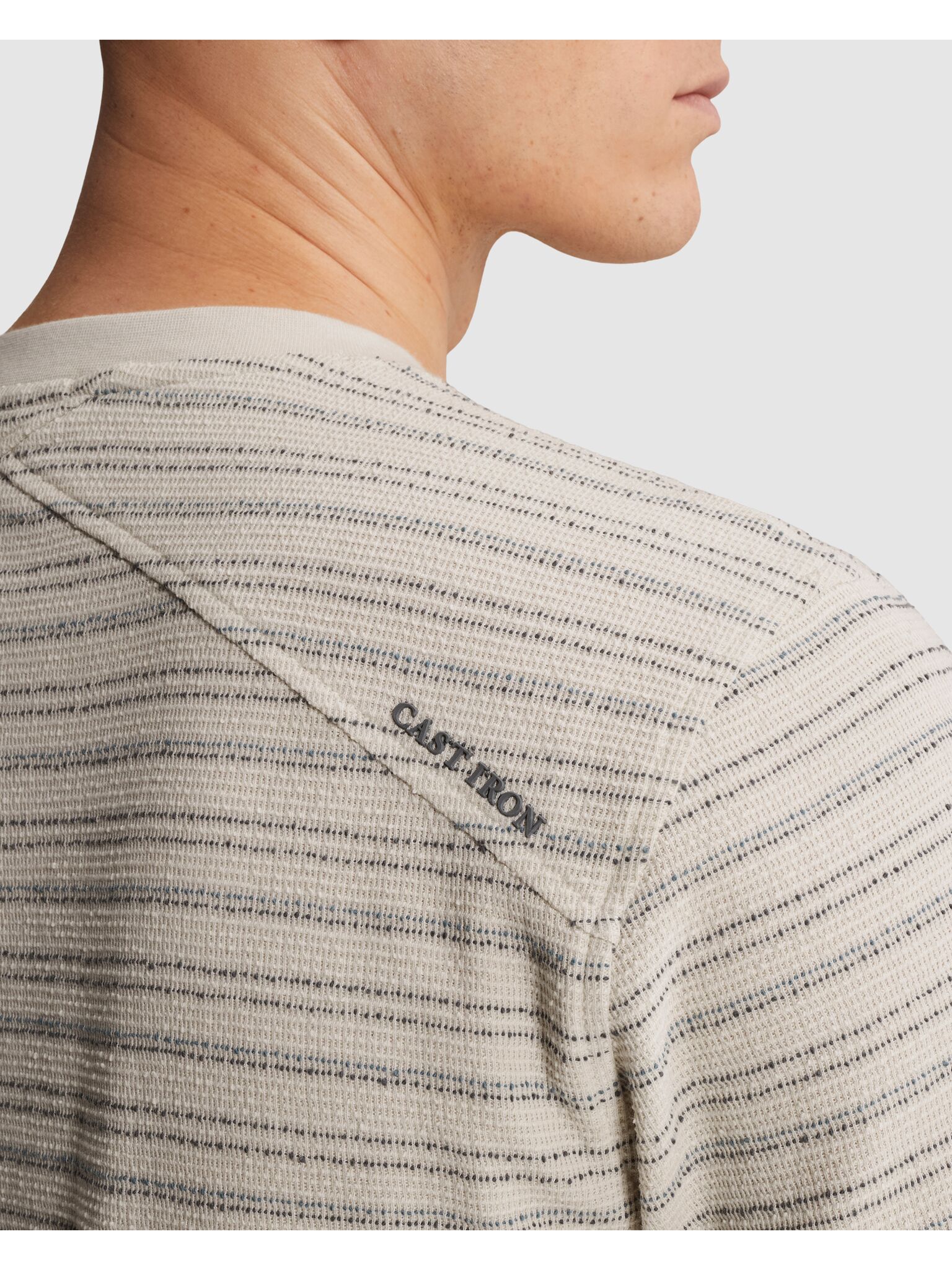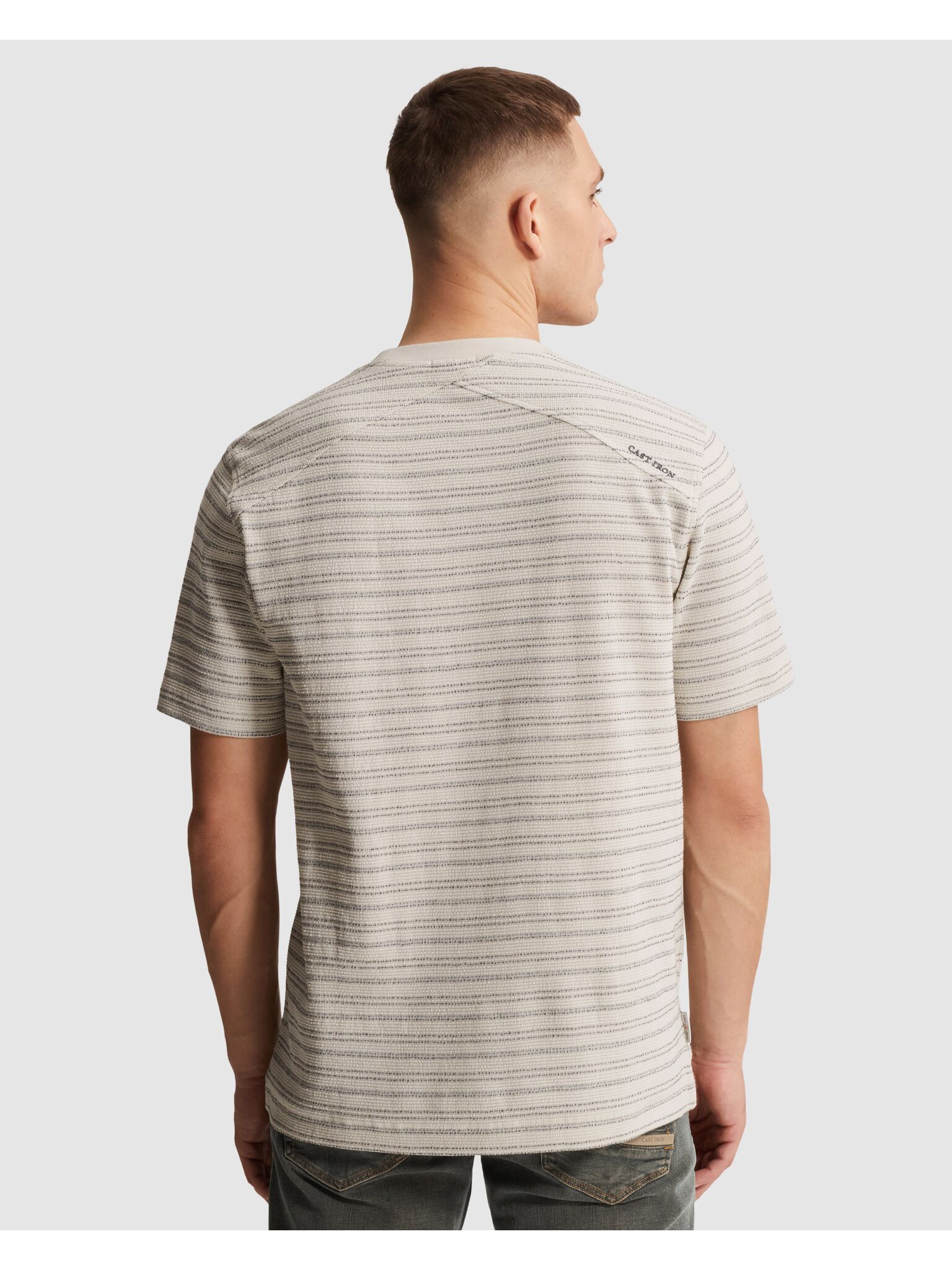 T-shirt Regular fit van Cast Iron met ronde hals, korte mouwen en regular pasvorm. Het streeppatroon en de subtiele borstprint geven een rustige uitstraling. De rechte zoom draagt comfortabel en beweegt makkelijk mee. Combineer met denim en sneakers voor een relaxte, verzorgde set.