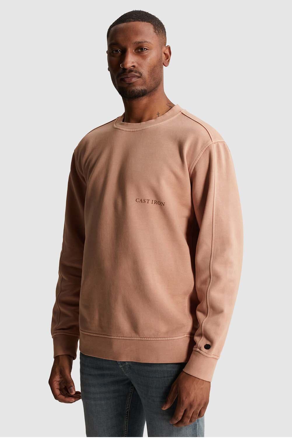 Trui van Cast Iron met een regular pasvorm, ronde hals en lange mouwen met ribgebreide boorden. Het effen ontwerp in zachte zandtint krijgt een subtiel logo op de borst. Draagt prettig voor casual momenten. Combineer met een jeans en sneakers voor een rustige, verzorgde outfit.