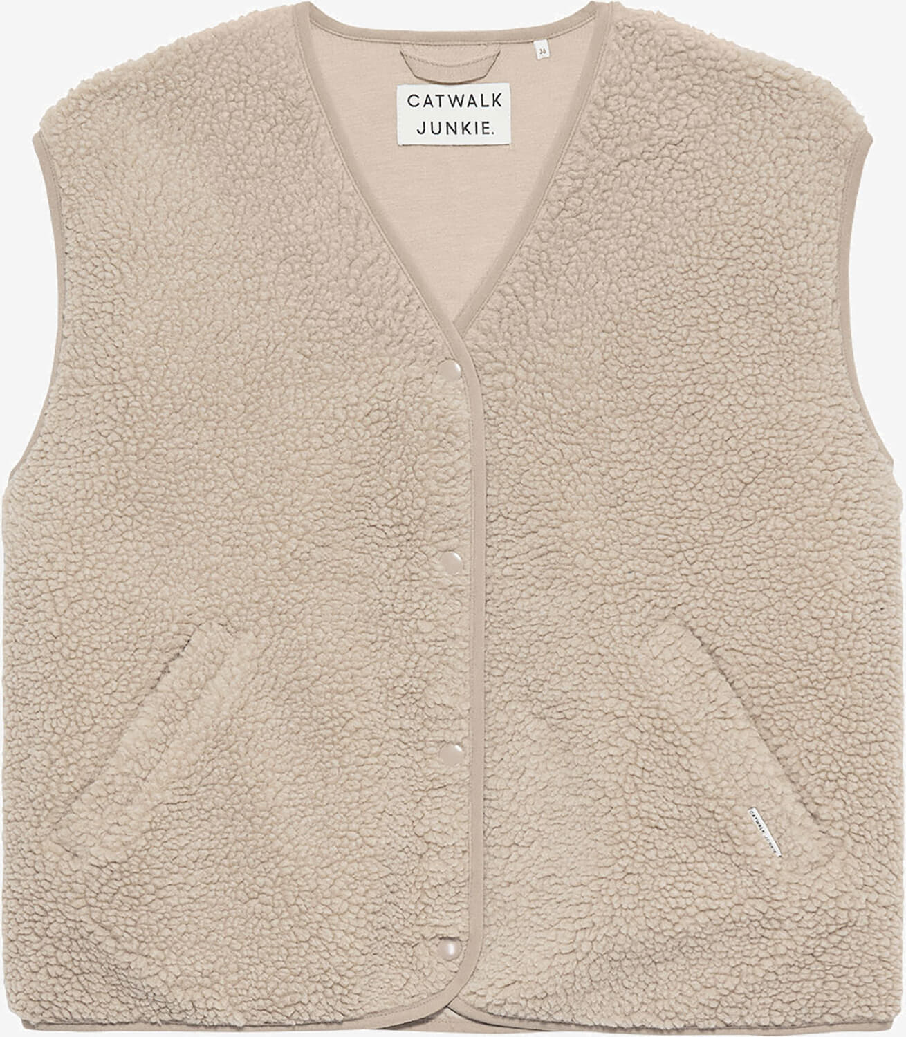 Bodywarmer Teddy, bodywarmer van Catwalk Junkie, heeft een zachte teddystructuur, een effen afwerking en een regular pasvorm. De V-hals en druk-knoopsluiting zorgen voor een makkelijke, casual styling, terwijl de zakken op de voorzijde ruimte geven voor kleine essentials.
