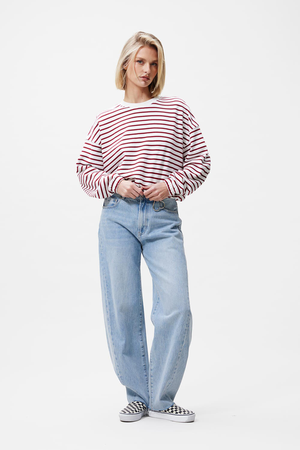 Catwalk Junkie Sweater Striped with elastic hems Bordeaux Rood
