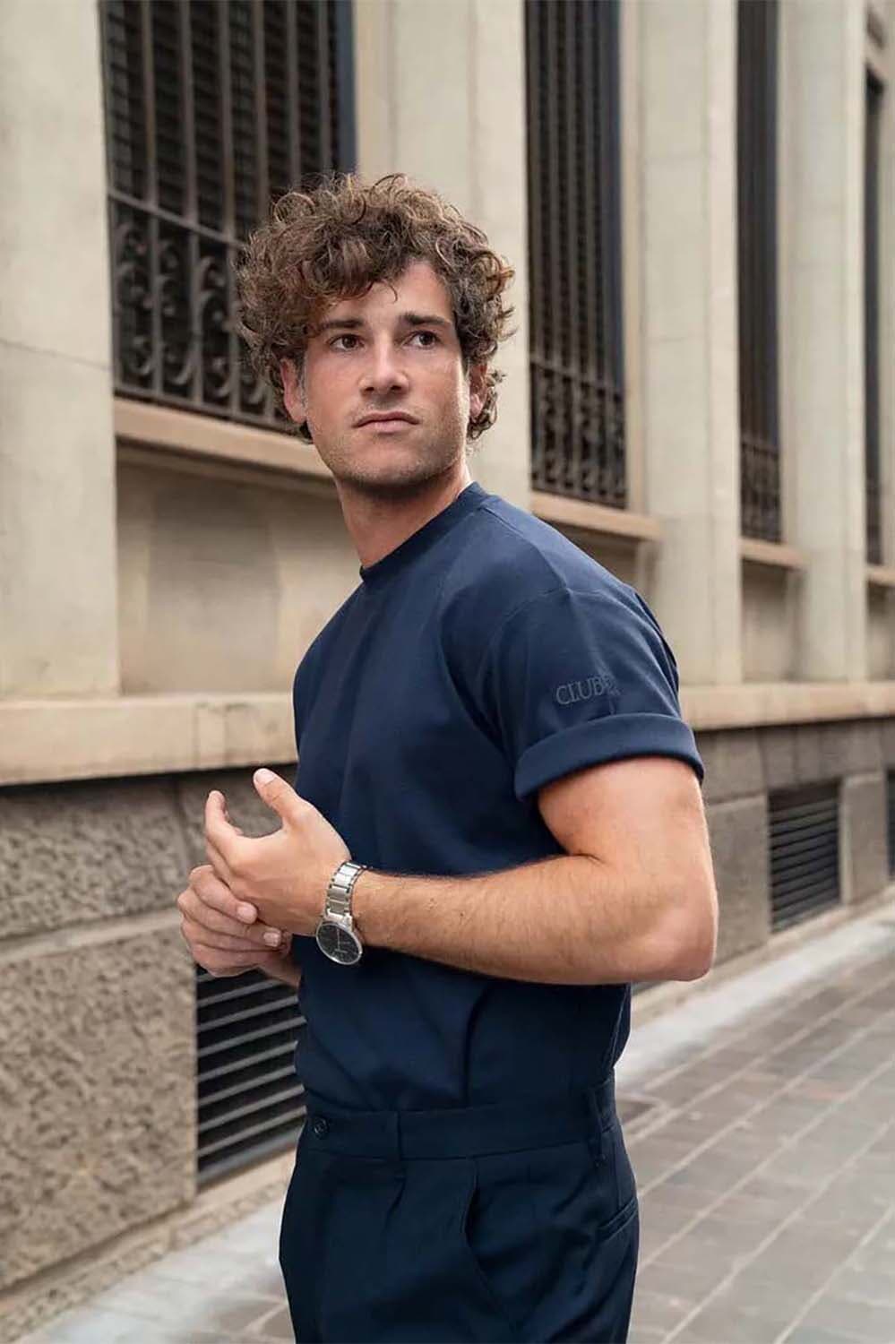 Afmetingen Lieuwe is 190 cm lang en draagt maat M