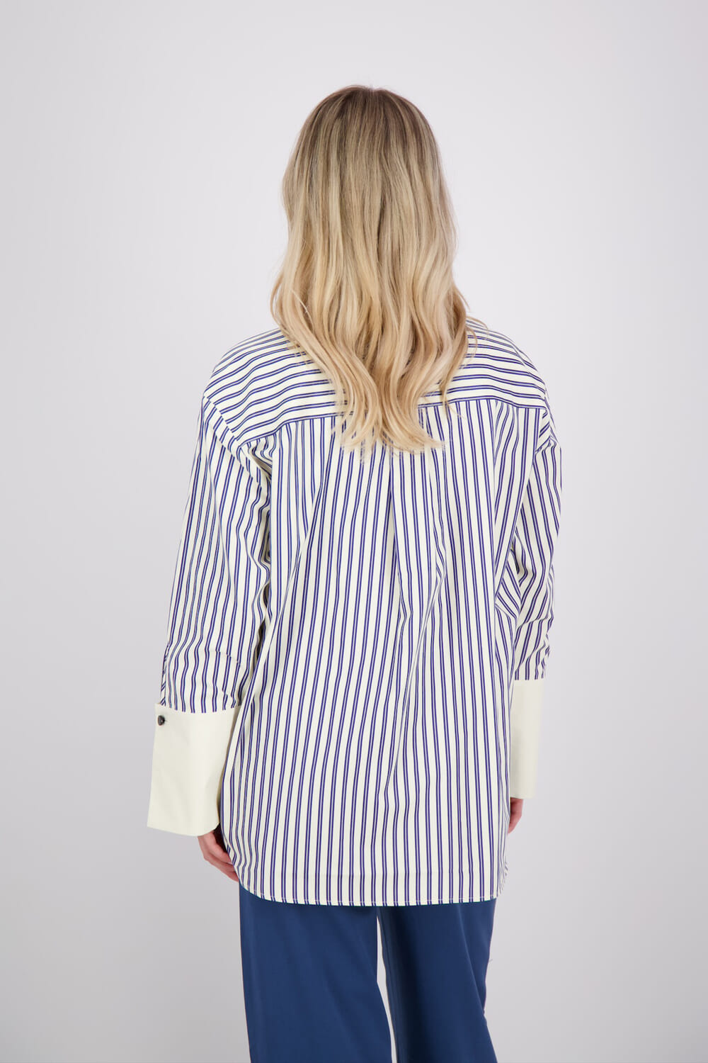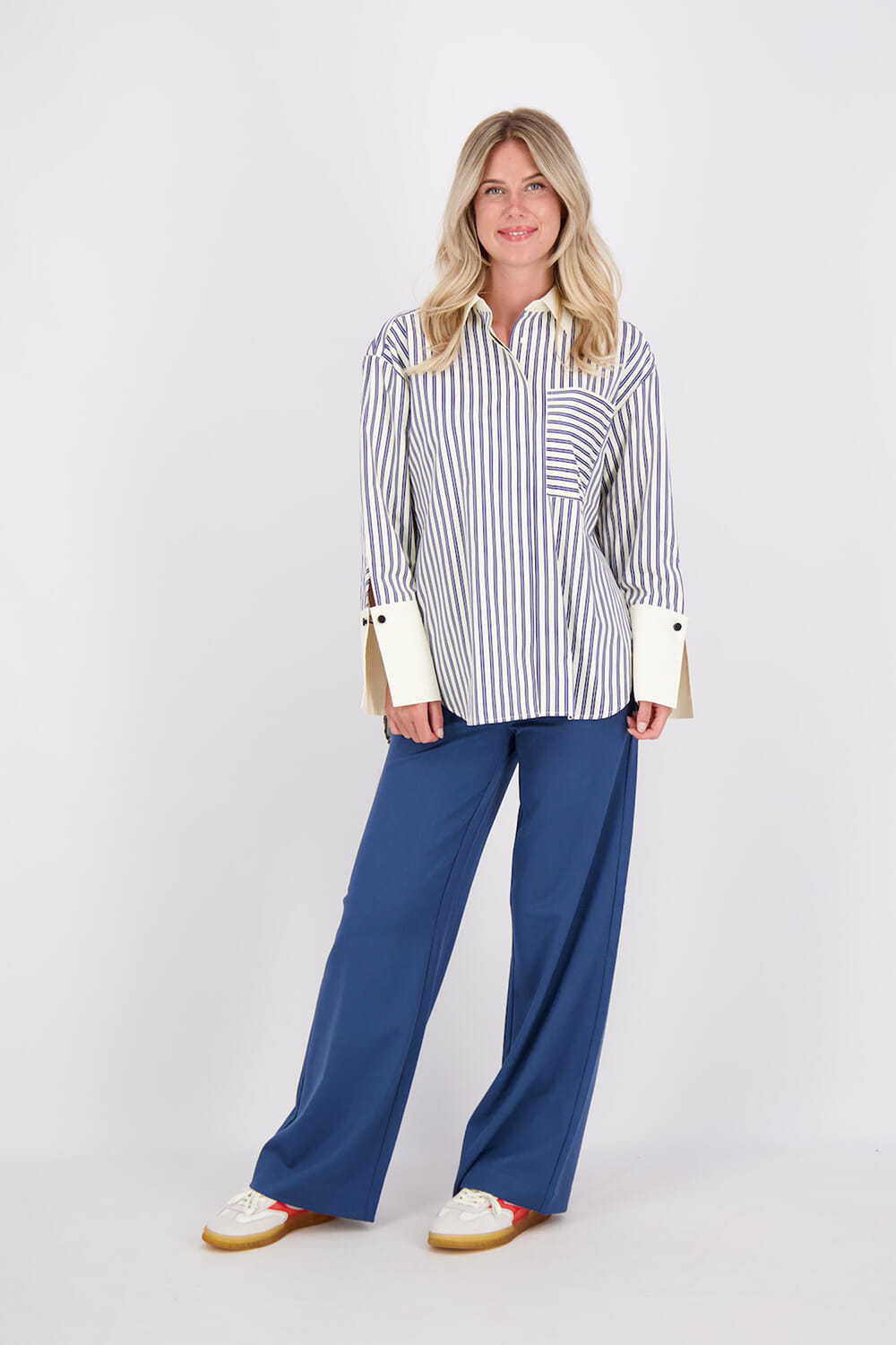 Het overhemd samson stripe van Co'Couture is een elegante blouse met een losse pasvorm. Dit gestreepte design heeft een opstaande kraag, lange mouwen met knoopmanchetten en zakken op de voorzijde, ideaal voor een nette gelegenheid.
