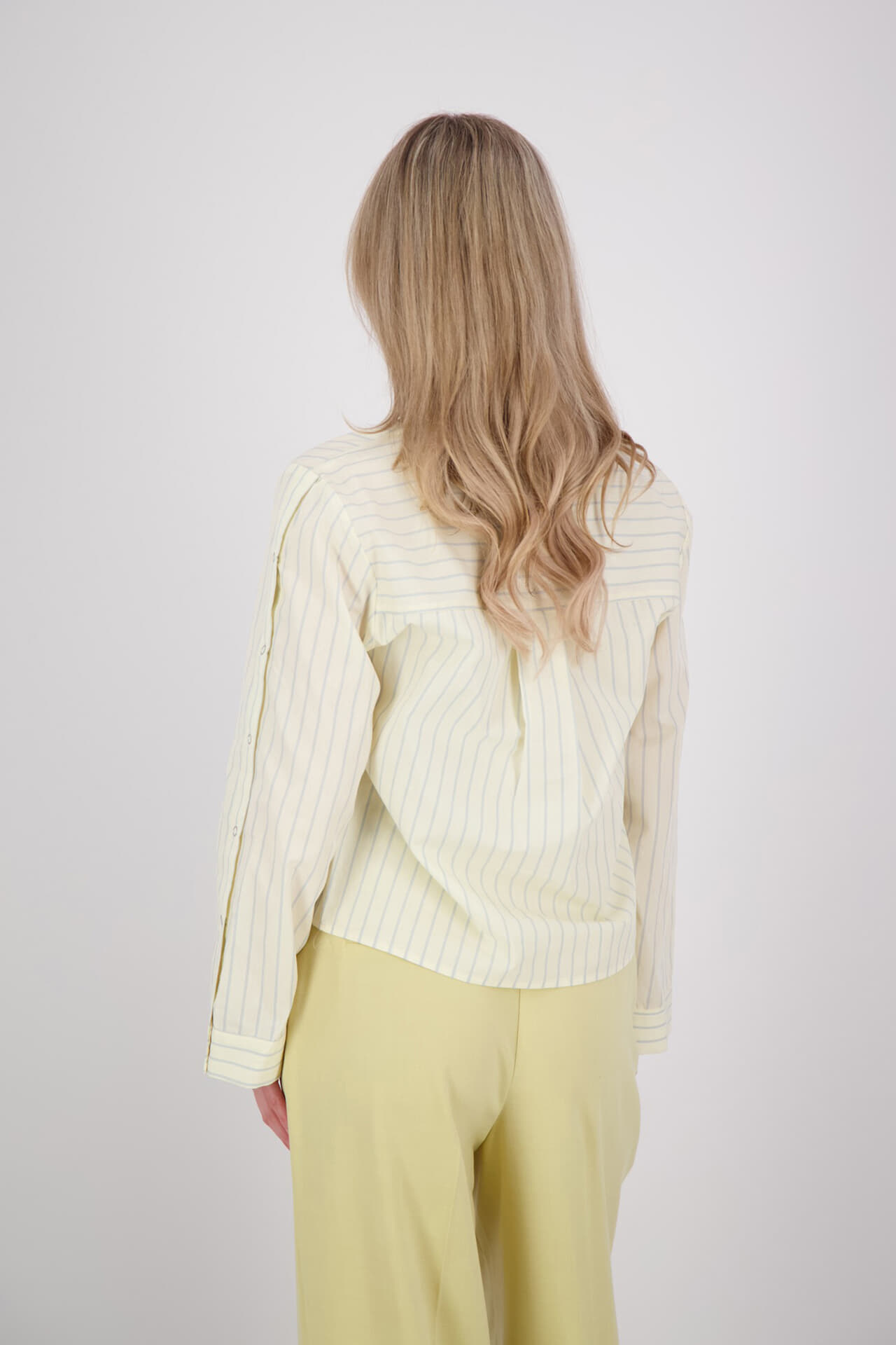 Blouse Simo van Co'Couture is een casual overhemd met regular pasvorm en streeppatroon. De spreidkraag, knoopsluiting en borstzak geven een heldere basis. Lange mouwen met brede manchetten en knopen langs de mouw zorgen voor variatie. Combineer met een jeans of pantalon.