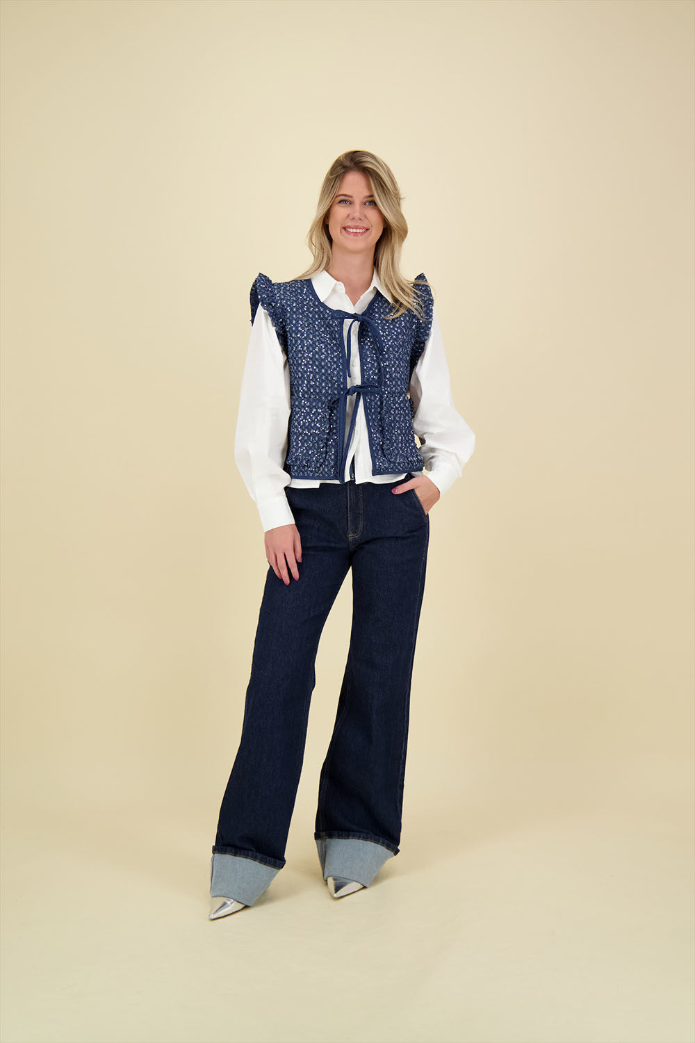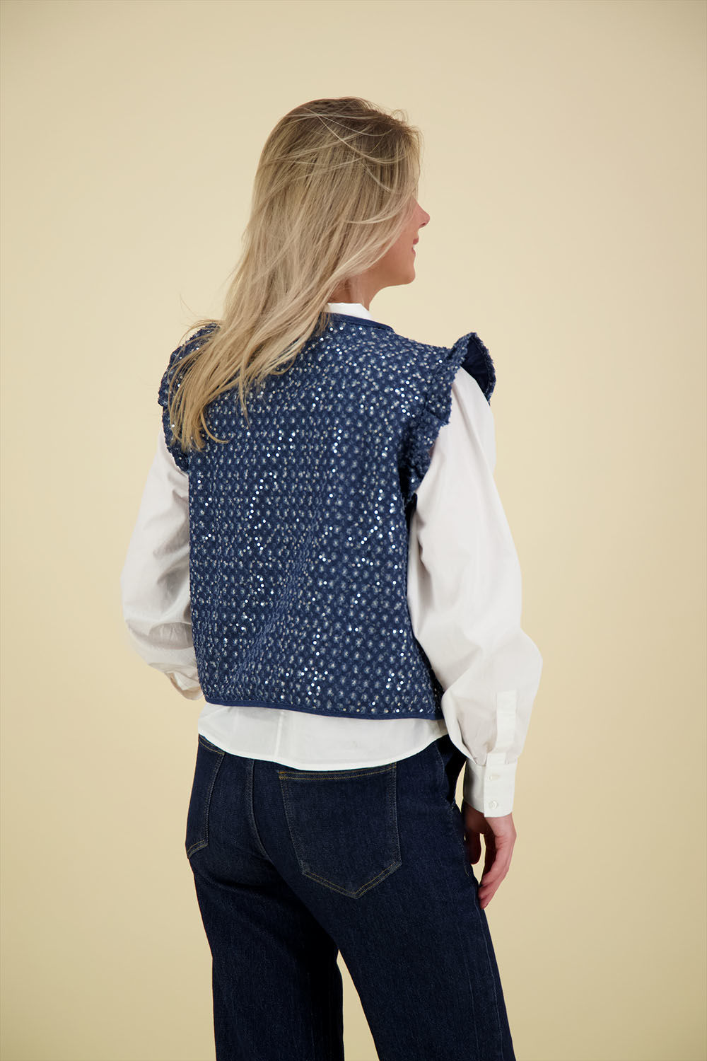 Gilet Sequin Denim van Co'Couture is een stijlvol dames gilet met korte mouwen en een striksluiting. Gemaakt van katoen, biedt het een regular fit en een effen patroon. Ideaal voor de basiscollectie, dit gilet straalt vrouwelijke elegantie en veelzijdigheid uit.