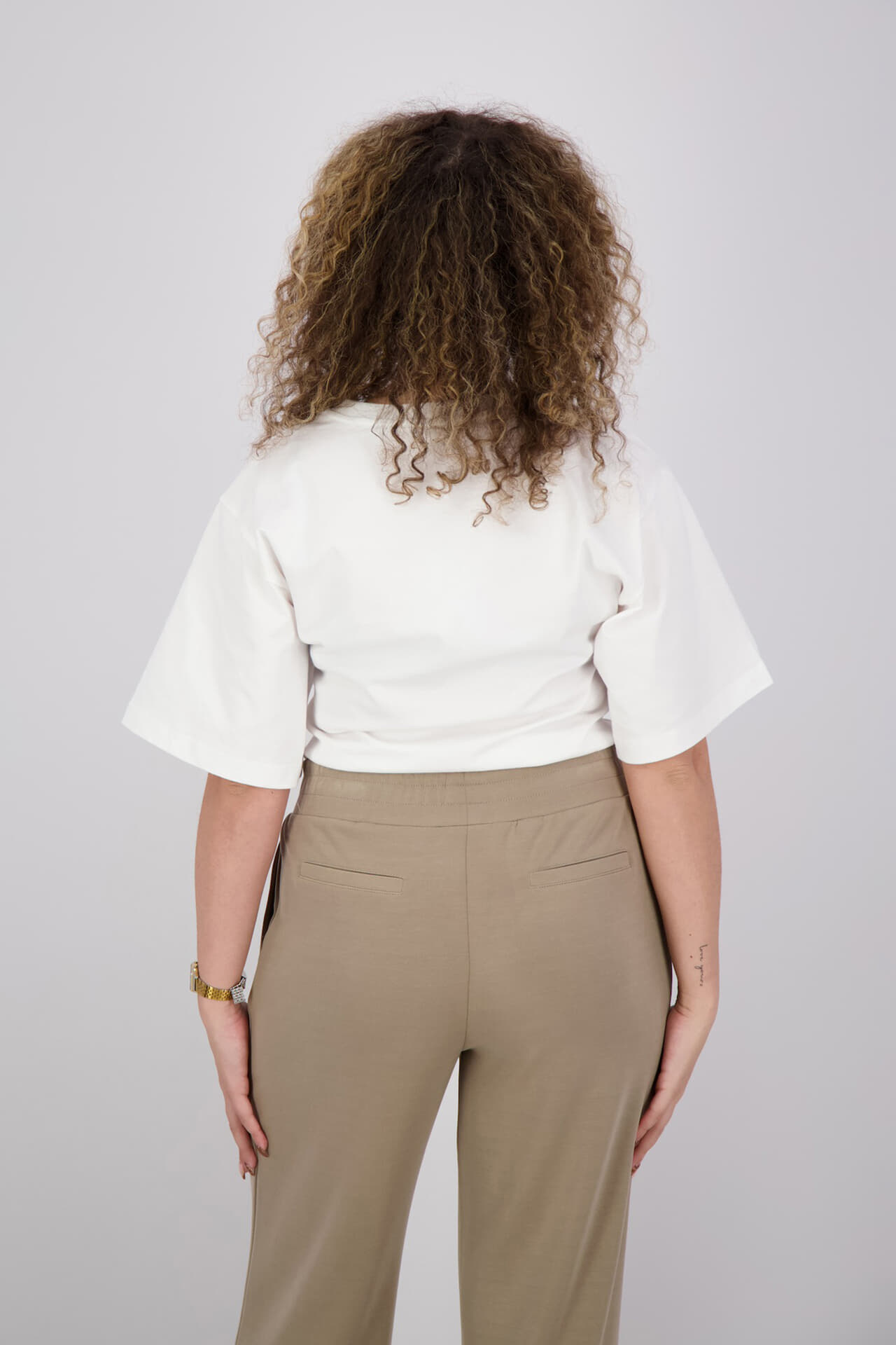 Shirt Zenga van Co'Couture is een casual item met ronde hals, korte mouwen en een opvallende logoprint op de borst. De rechte, iets ruimere pasvorm en brede mouwboorden geven een relaxte uitstraling, ideaal voor alledaagse combinaties met jeans, rok of blazer.