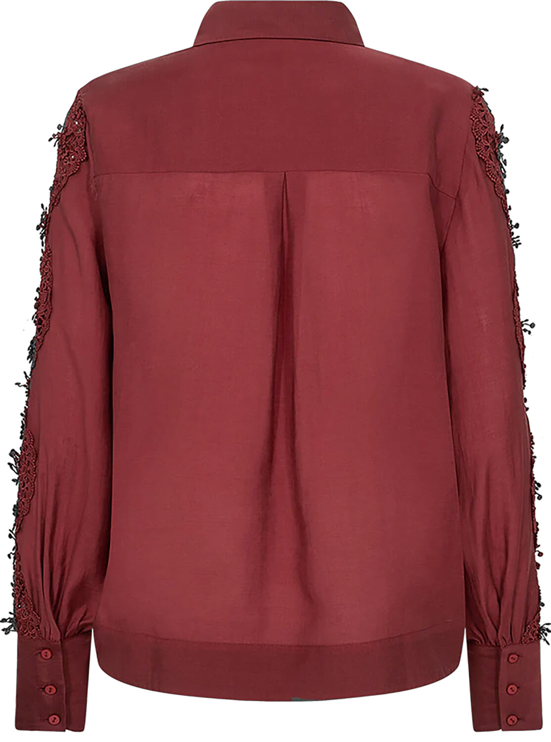 Blouse Molli van Copenhagen Muse is een stijlvolle blouse met een verfijnde spreidkraag en knoopsluiting. De lange mouwen zijn versierd met delicate kanten details, waardoor een elegante uitstraling ontstaat. Het effen patroon maakt deze blouse perfect voor diverse gelegenheden.