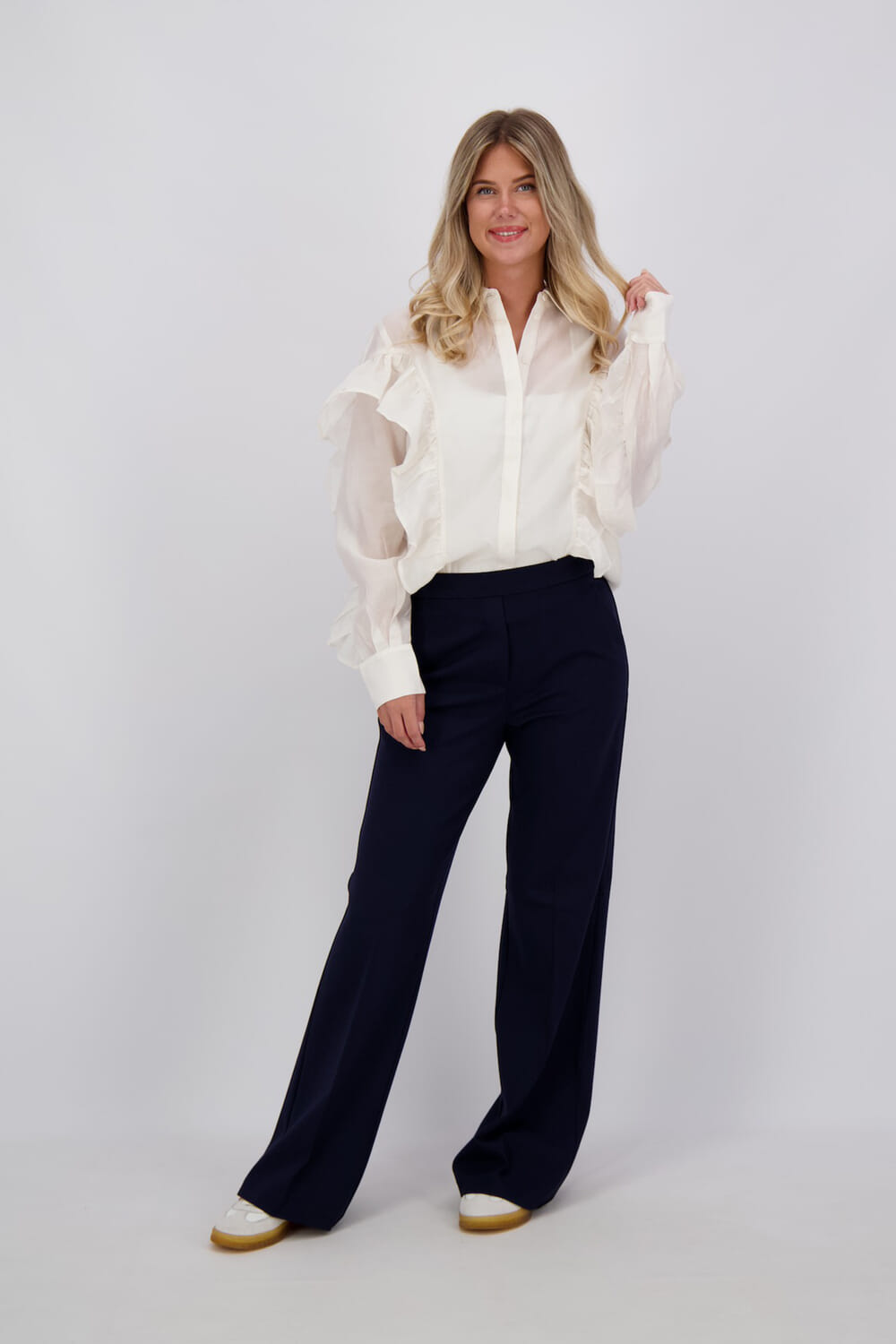 Blouse Molli van Copenhagen Muse is een trendy blouse met opstaande kraag en lange mouwen met knoopmanchetten. De elegante ruches zorgen voor een stijlvolle uitstraling, terwijl de regular fit en effen patroon het veelzijdig maken voor diverse gelegenheden. Ideaal voor nette outfits.
