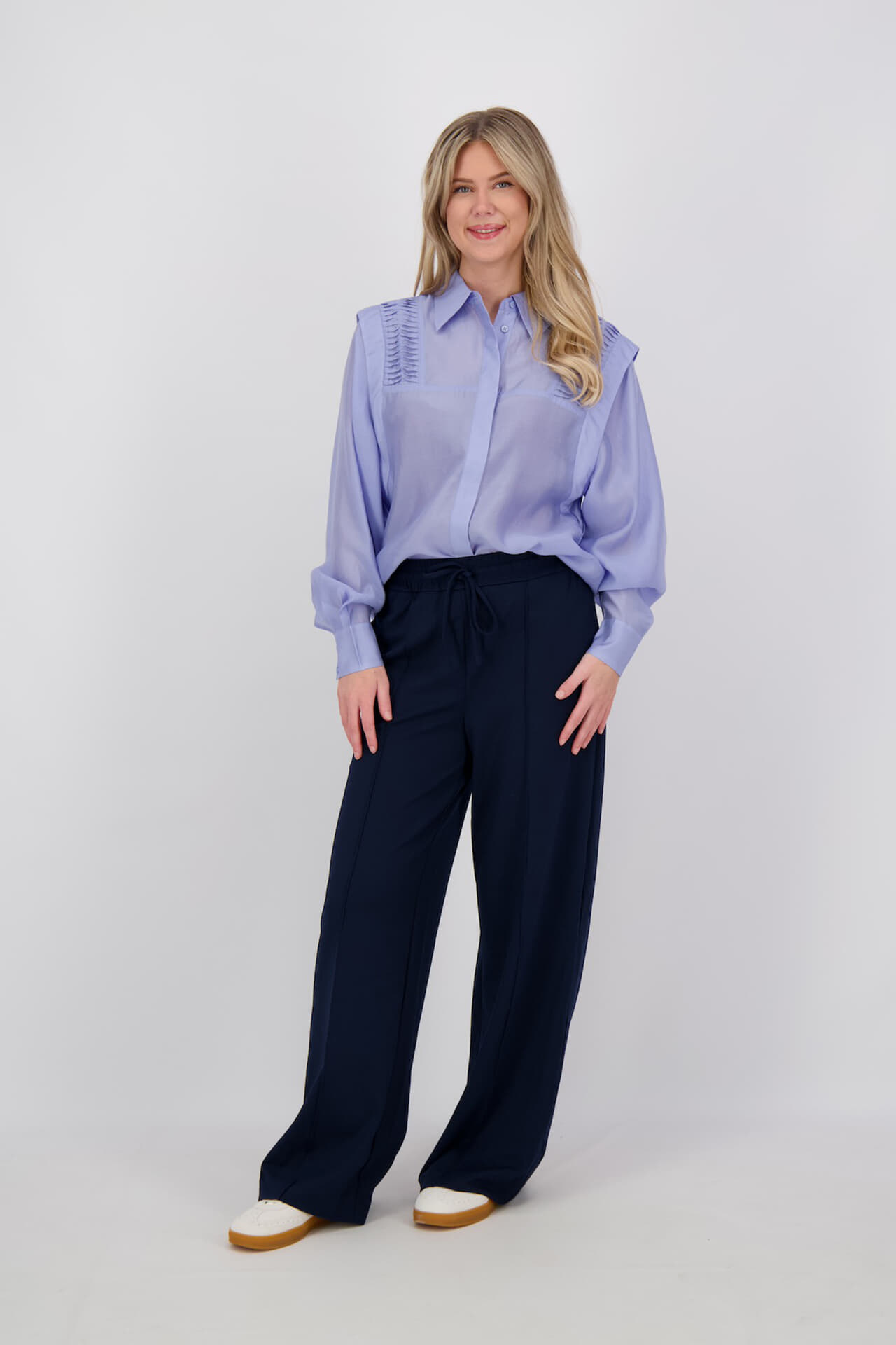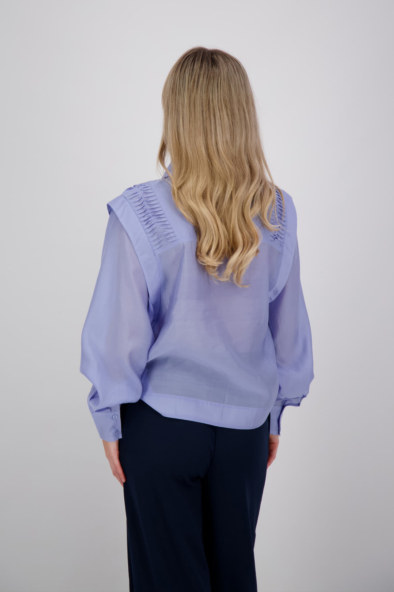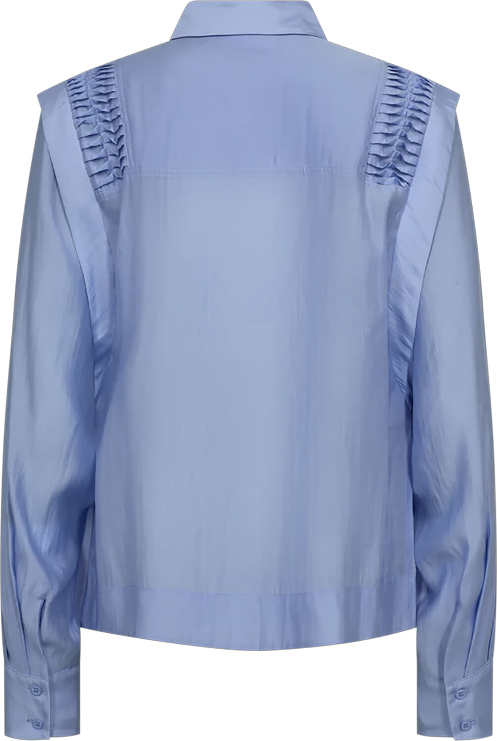 De Mollie Blouse van Copenhagen Muse is een verfijnde, casual blouse met een button-down kraag, lange mouwen en manchetknopen. De regular fit en het effen patroon geven de blouse een nette uitstraling, ideaal voor diverse gelegenheden. De geplooide details op de schouders zorgen voor een unieke touch.