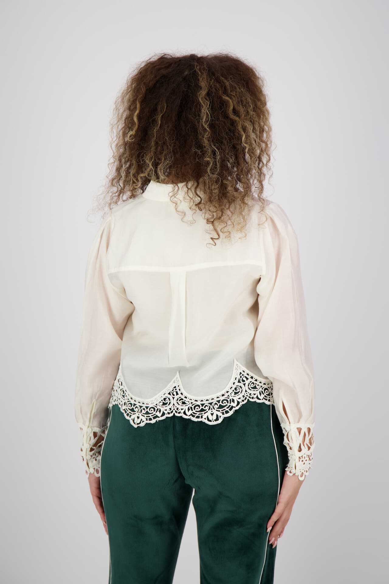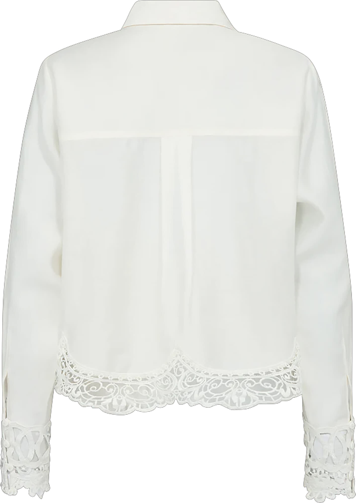 De Blouse Molly van Copenhagen Muse is een elegante blouse met een button down kraag en voorzakken. De getailleerde pasvorm met lange mouwen en knoopmanchetten geven het een nette uitstraling. De subtiele kanten details aan de onderkant maken het ontwerp verfijnd.