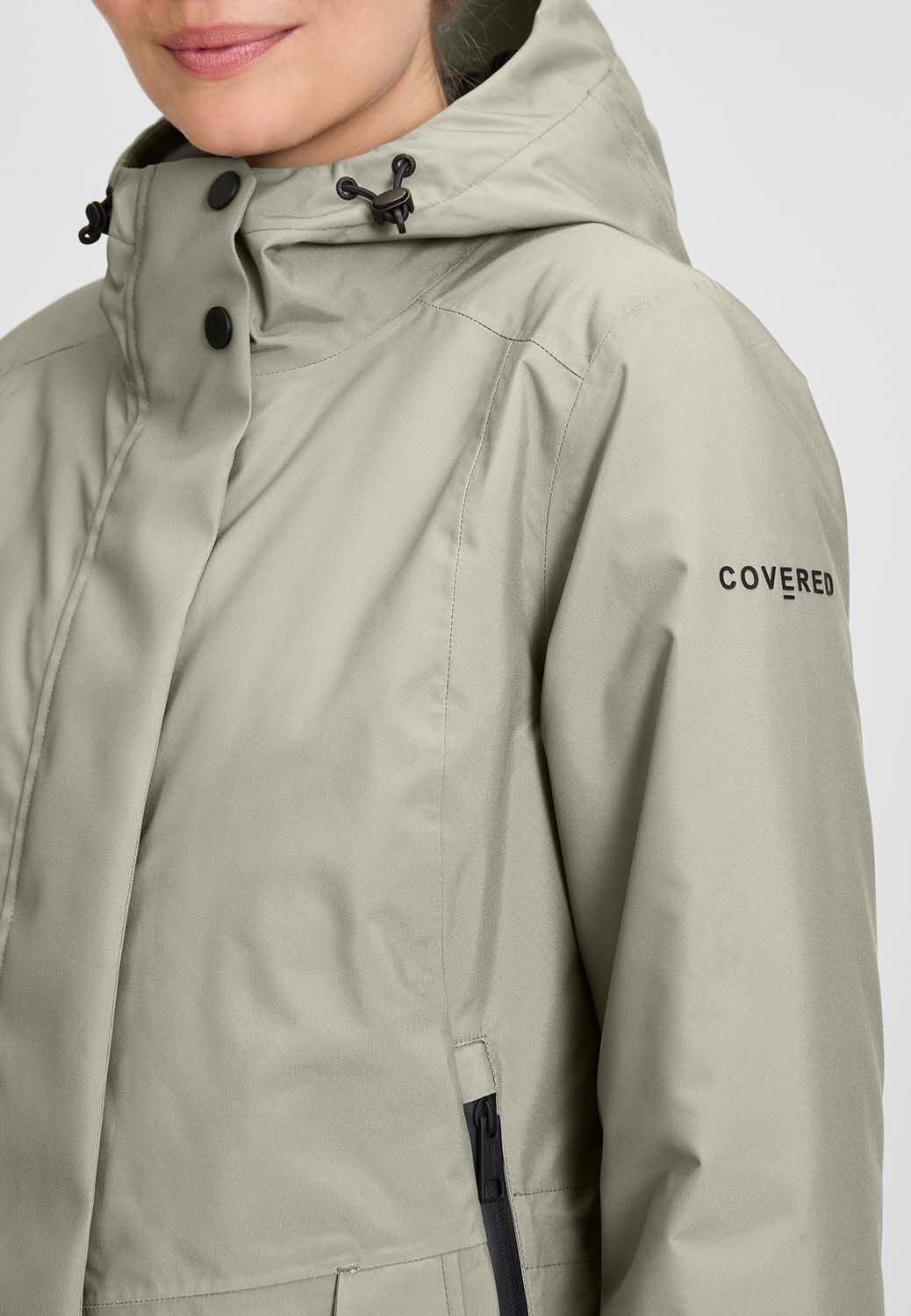 De Frida regenjas van Covered biedt stijl en comfort in elke weersituatie. Deze tussenjas heeft een capuchon, knopen en een rits, en een relaxed pasvorm. Ideaal voor casual gelegenheden, met lange mouwen en een bescheiden, casual uitstraling die veelzijdig inzetbaar is.