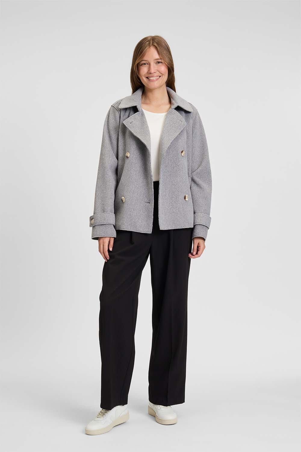 De Wisal dames wollen jas van Covered combineert stijl en comfort. Met een verfijnde button down kraag en dubbele rij knopen biedt deze tussenjas een elegante uitstraling. De lange mouwen en aangepaste pasvorm maken het ideaal voor diverse gelegenheden en temperaturen.
