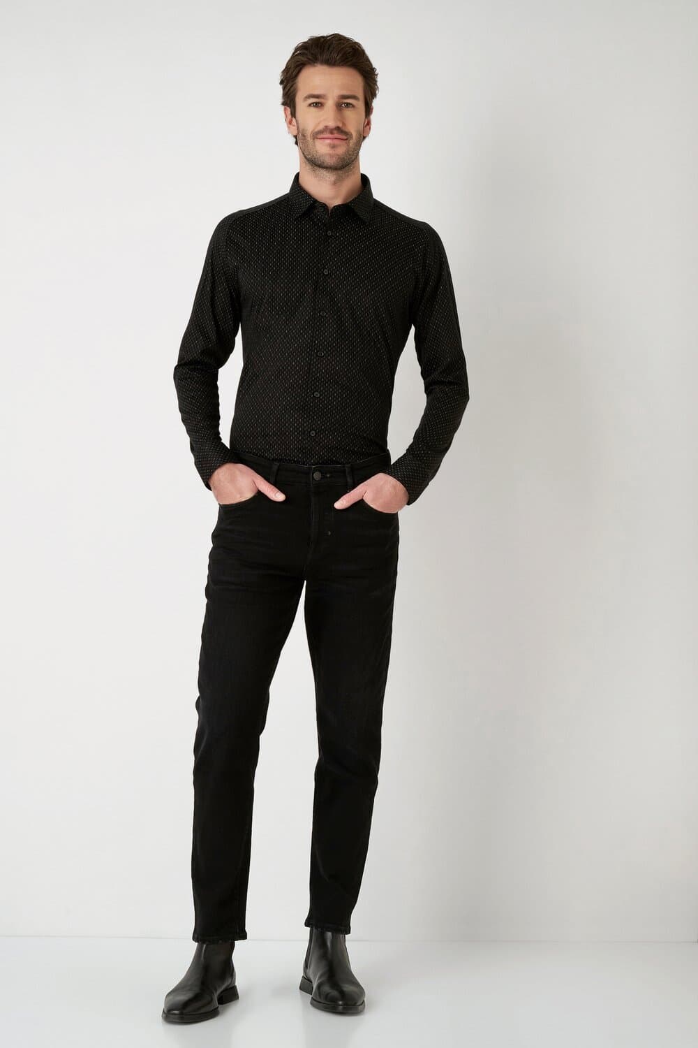 Overhemd Kent Casual van DESOTO is een stijlvol business overhemd met een grafisch patroon. Voorzien van lange mouwen, een spreidkraag en manchetten met knopen, biedt dit overhemd een verfijnde uitstraling voor elke nette gelegenheid. Ideaal voor wie houdt van stijlvolle eenvoud.