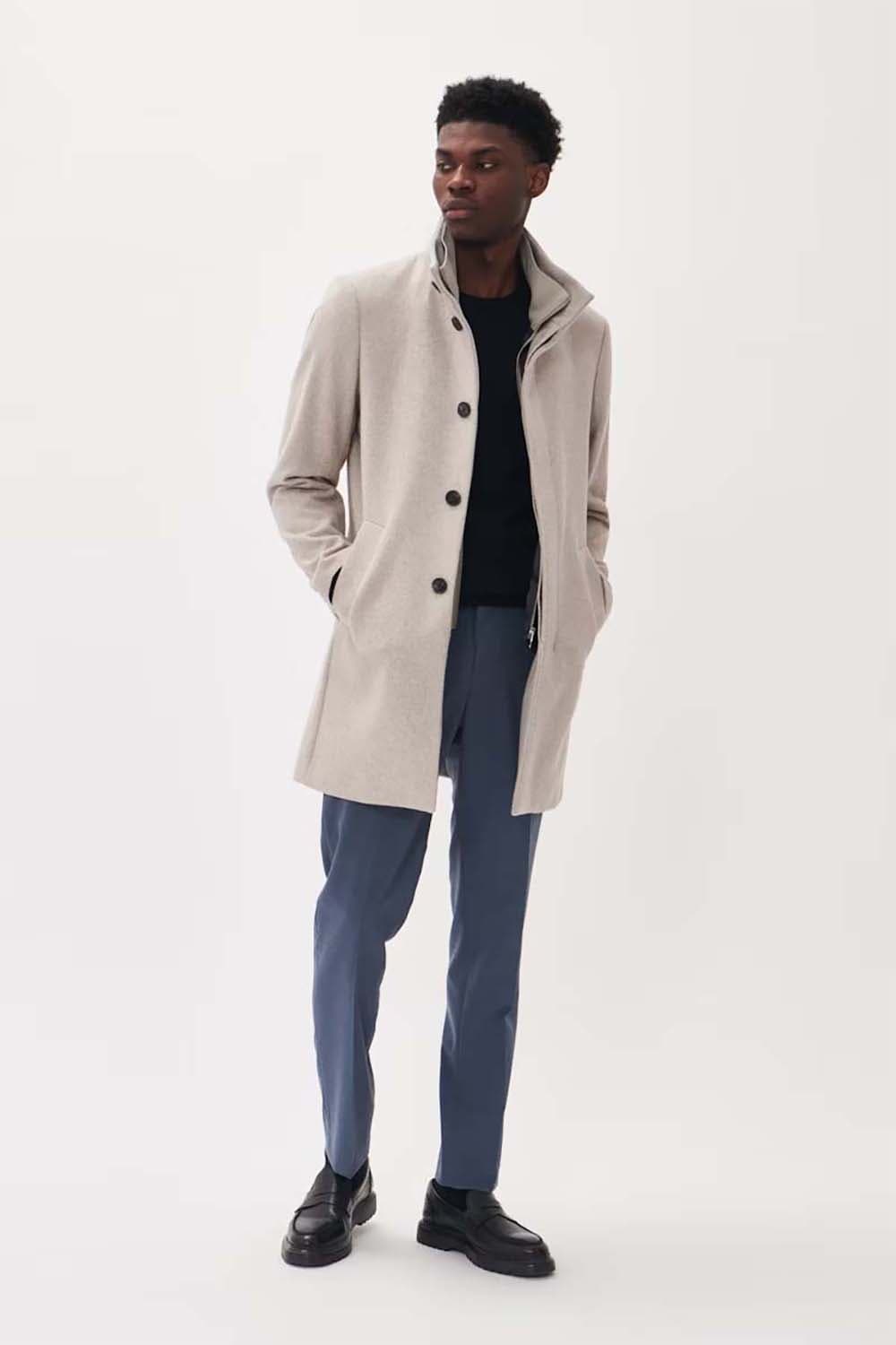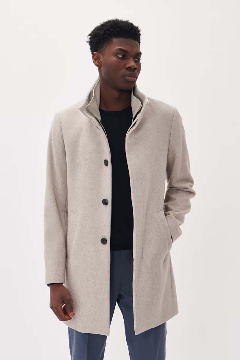 Jas Harvey van MATINIQUE is een stijlvolle wollen jas voor heren. Met een verfijnd ontwerp biedt de jas een opstaande kraag en lange mouwen. De sluiting met knopen voegt een klassieke touch toe, terwijl het colbert-stijl een tijdloze elegantie uitstraalt.