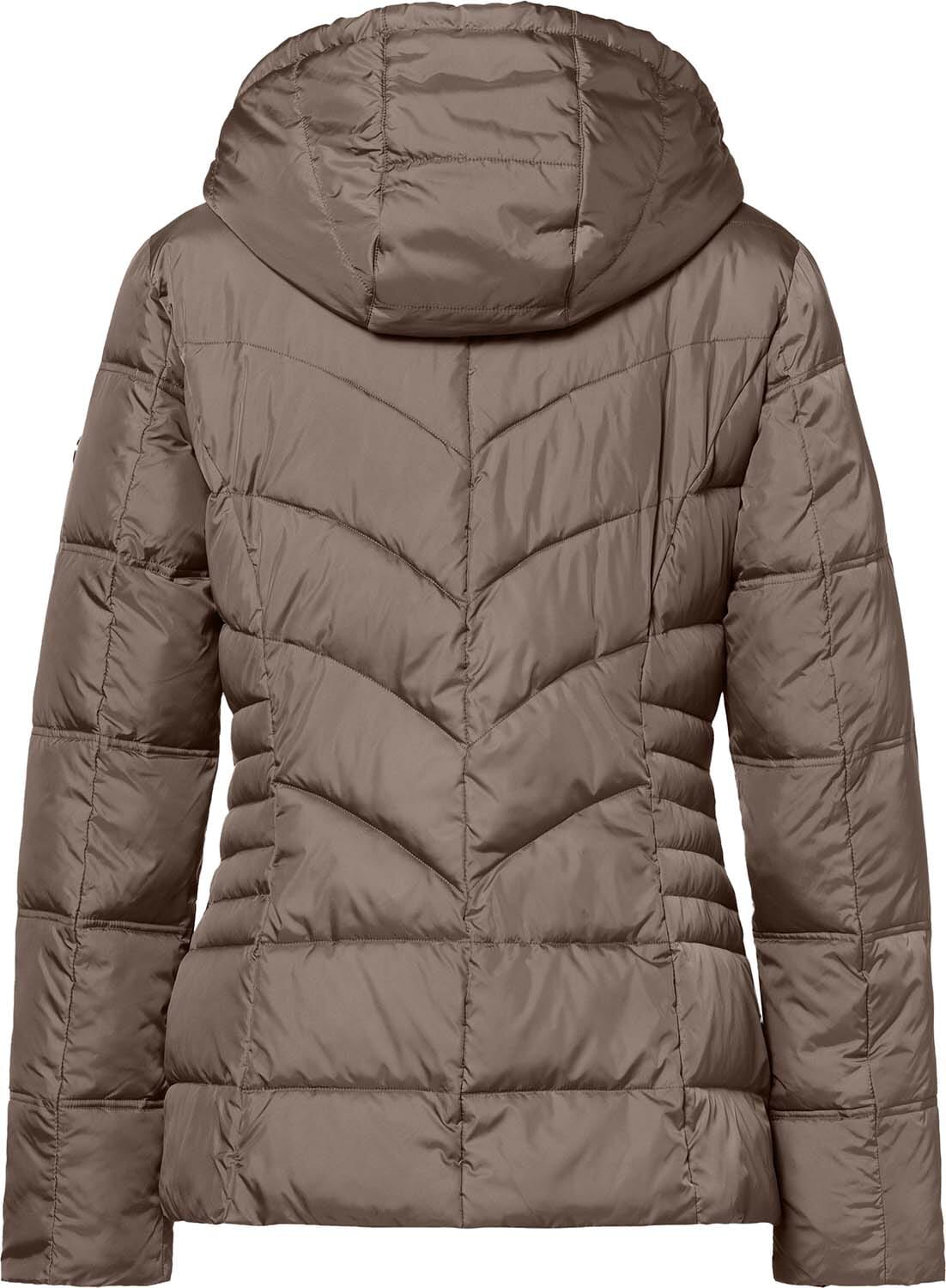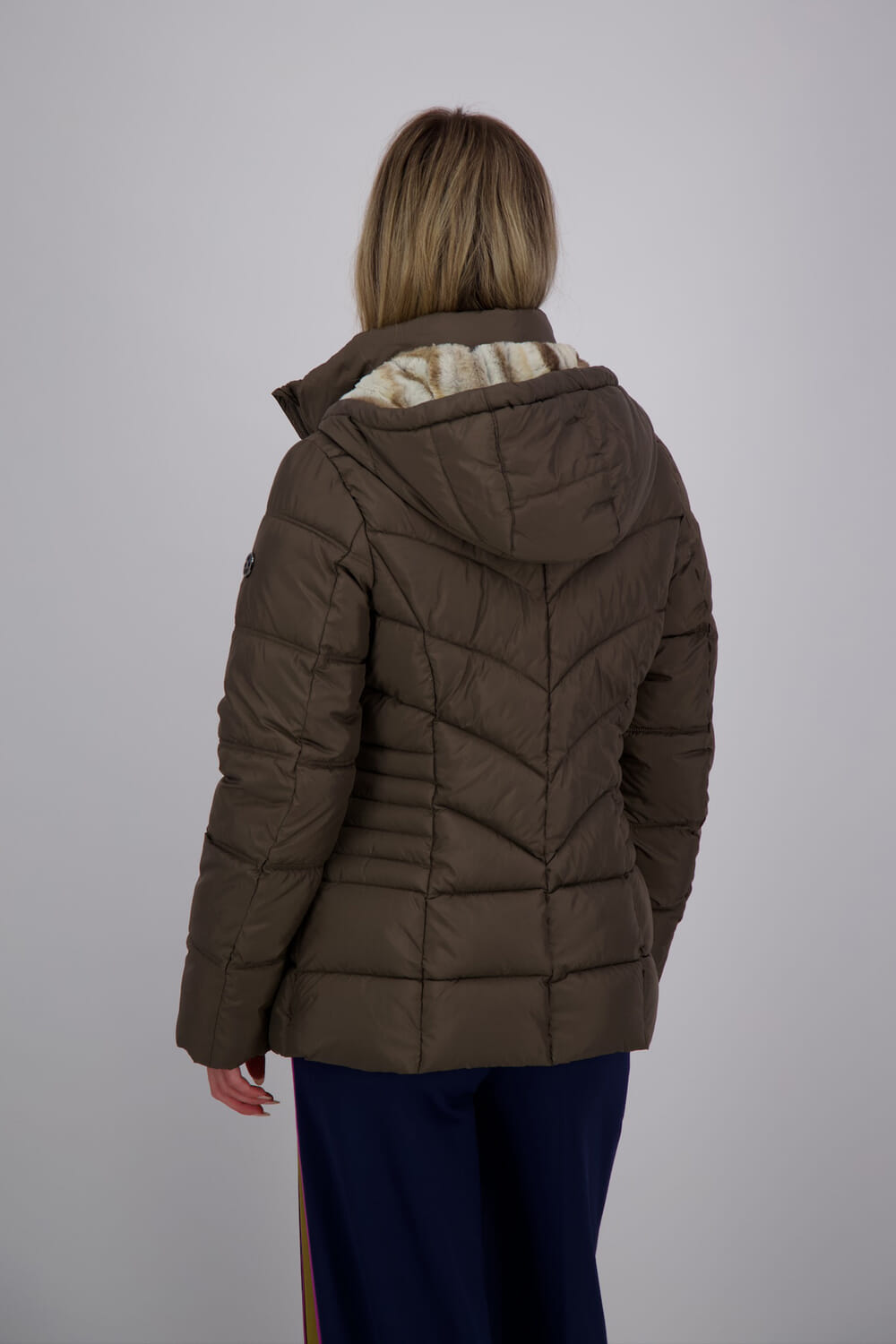 De MONTANA jas van District is een kort model stepjack met een speels quiltpatroon, gemaakt van gerecycled materiaal. De licht glanzende, waterafstotende stof biedt bescherming tegen lichte neerslag en geeft de jas een moderne uitstraling. De afneembare en verstelbare capuchon is gevoerd met imitatiebont voor extra warmte en comfort. Zwarte contrastritsen met sportieve koordjespullers en een bijpassend koorddessin in de capuchon zorgen voor een stoere, eigentijdse look. De jas is voorzien van twee ruime steekzakken met ritssluiting, manchetten met tricot windvangers en een binnenzak die afsluitbaar is met een knoop. Een stijlvolle en praktische keuze voor frisse dagen.