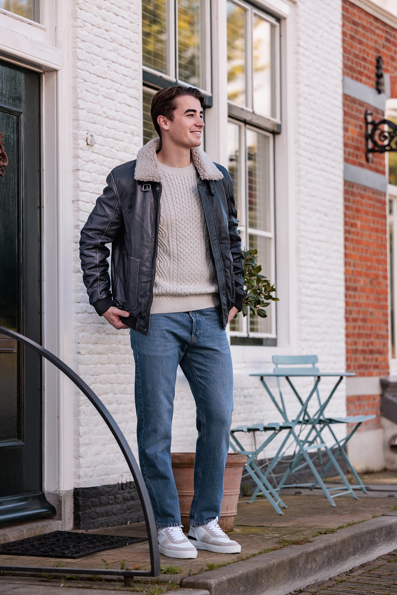 De leren jas van Donders 1860 is een stijlvolle heren leren jas met een opstaande kraag en lange mouwen. Deze casual bomberjas heeft een regular fit en biedt comfort en warmte, perfect voor dagelijks gebruik. De hoogwaardige afwerking maakt het een tijdloze keuze.
