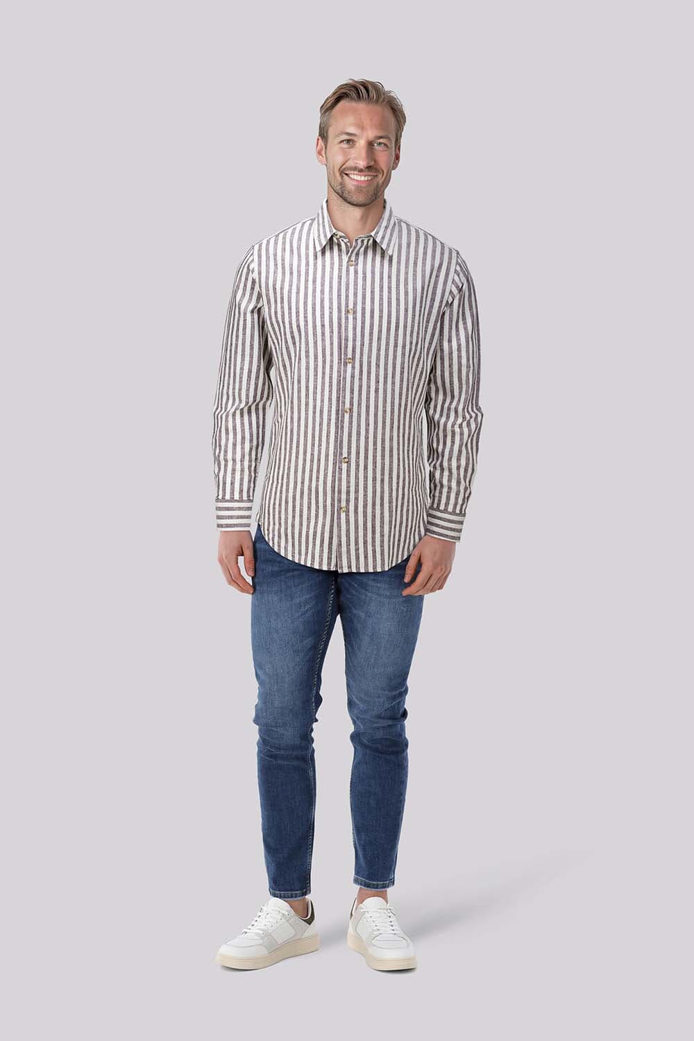 Overhemd Philip van Dstrezzed is een casual heren overhemd met een button down kraag, lange mouwen en een streep patroon. De normale taille en de knoopsluiting maken het veelzijdig voor elke gelegenheid. Voorzien van zakken op de voorzijde en manchetten met knopen.